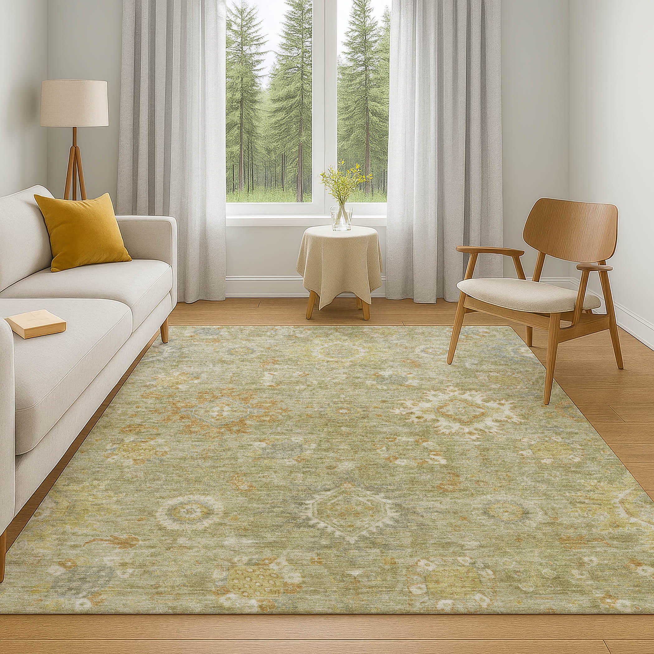 This 5-foot x 8-foot sage copper and ivory oriental washable area rug with uv protection, is a great way to add warmth to a room. Ideal for spaces with kids and pets, this rug is stain resistant to help repel dirt and spilled liquids. Built to last, this rug crafted from polyester fibers is known for its durability and long lasting appeal. Rugs are a great way to showcase your style, hide imperfections, warm your home and reduce noise. This larger sized, traditional styled rug is ready to create a focal point or statement piece in your room. 60.00-inch h x 90.00-inch w x 0.39-inch d.