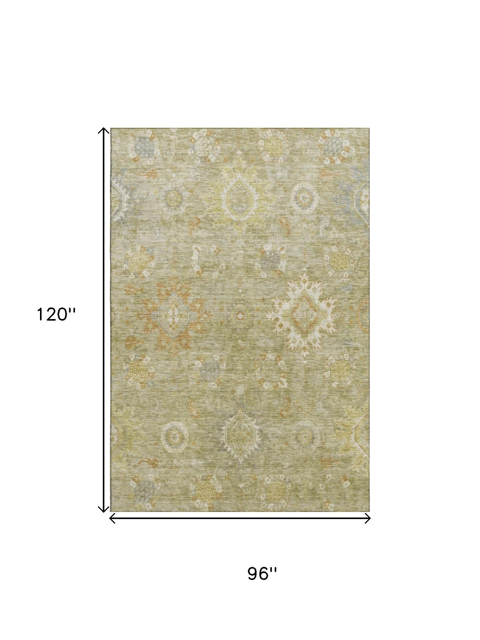 Add great coloration and comfortable texture to your space with this 8-foot x 10-foot sage copper and ivory oriental washable area rug with uv protection. Ideal for spaces with kids and pets, this rug is stain resistant to help repel dirt and spilled liquids. Built to last, this rug crafted from polyester fibers is known for its durability and long lasting appeal. Rugs are a great way to showcase your style, hide imperfections, warm your home and reduce noise. This larger sized, traditional styled rug is ready to create a focal point or statement piece in your room. 96.00-inch h x 120.00-inch w x 0.39-inch d.