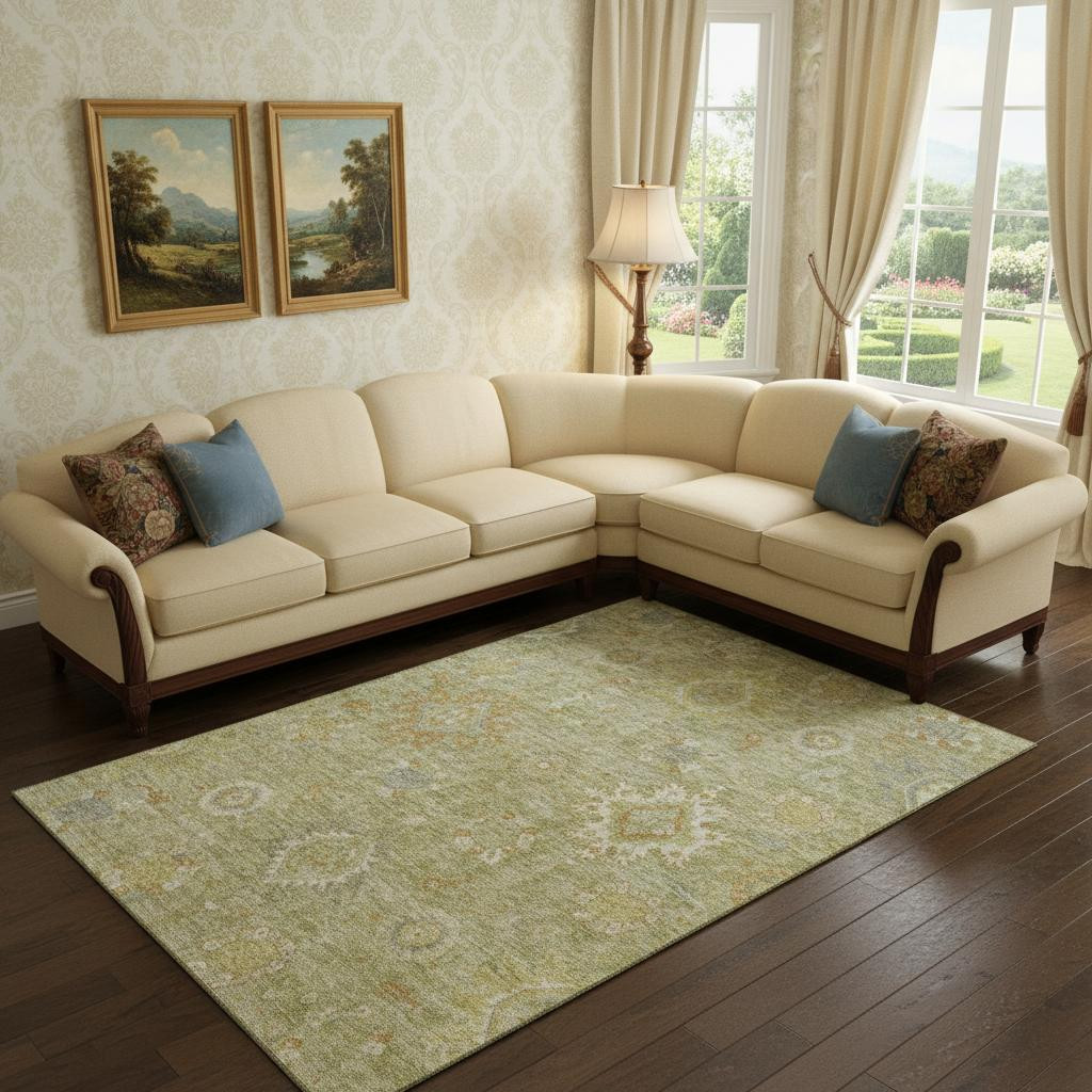 Set an inviting tone in your space with this 9-foot x 12-foot sage copper and ivory oriental washable area rug with uv protection. Ideal for spaces with kids and pets, this rug is stain resistant to help repel dirt and spilled liquids. Built to last, this rug crafted from polyester fibers is known for its durability and long lasting appeal. Rugs are a great way to showcase your style, hide imperfections, warm your home and reduce noise. This larger sized, traditional styled rug is ready to create a focal point or statement piece in your room. 108.00-inch h x 144.00-inch w x 0.39-inch d.