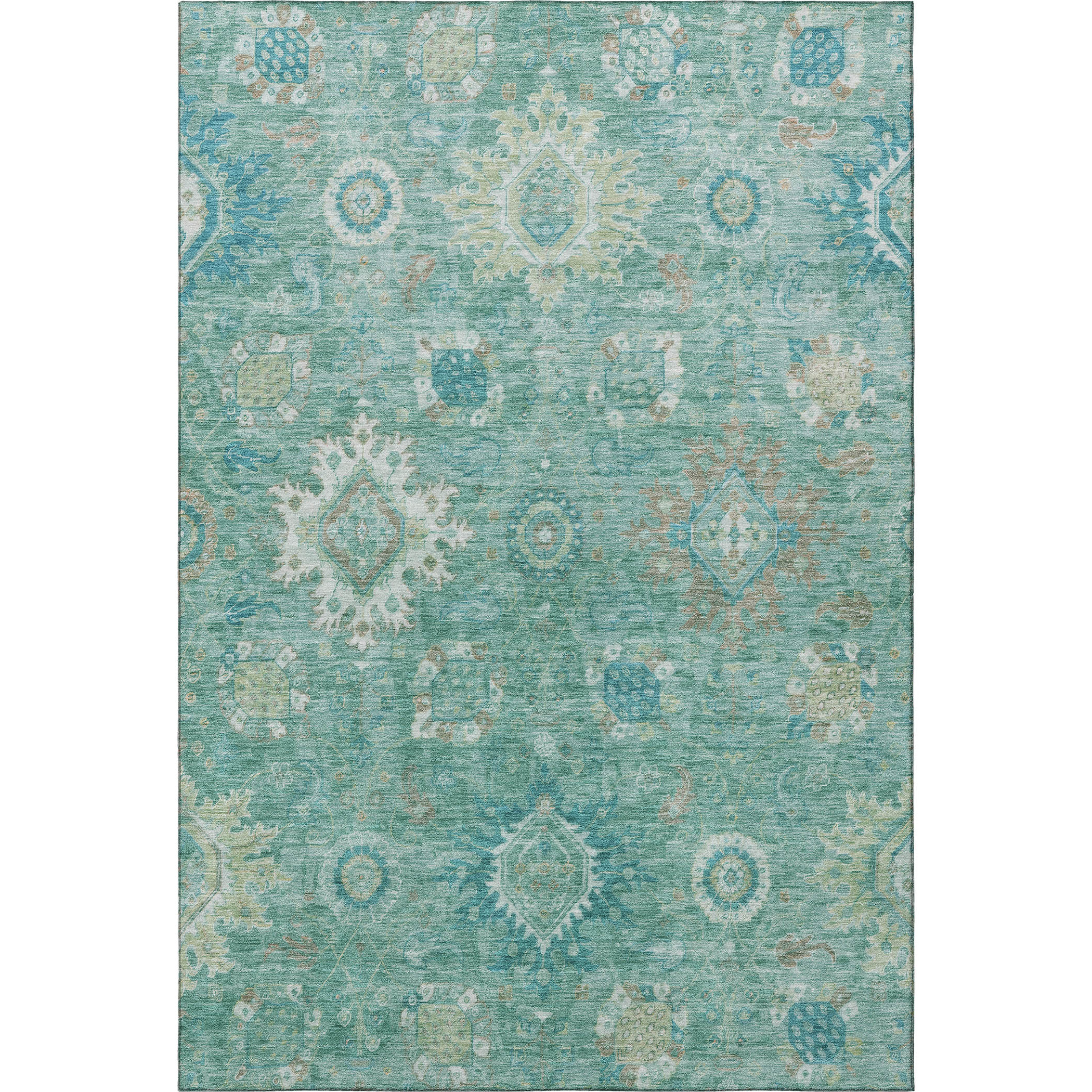 Add great coloration and comfortable texture to your space with this 3-foot x 5-foot teal copper and ivory oriental washable area rug with uv protection. Ideal for spaces with kids and pets, this rug is stain resistant to help repel dirt and spilled liquids. Built to last, this rug crafted from polyester fibers is known for its durability and long lasting appeal. Rugs are a great way to showcase your style, hide imperfections, warm your home and reduce noise. This smaller sized, traditional styled rug is just what you need for your walkway, bedside, in front of door, cabinet, refrigerator, or chair. 36.00-inch h x 60.00-inch w x 0.39-inch d.