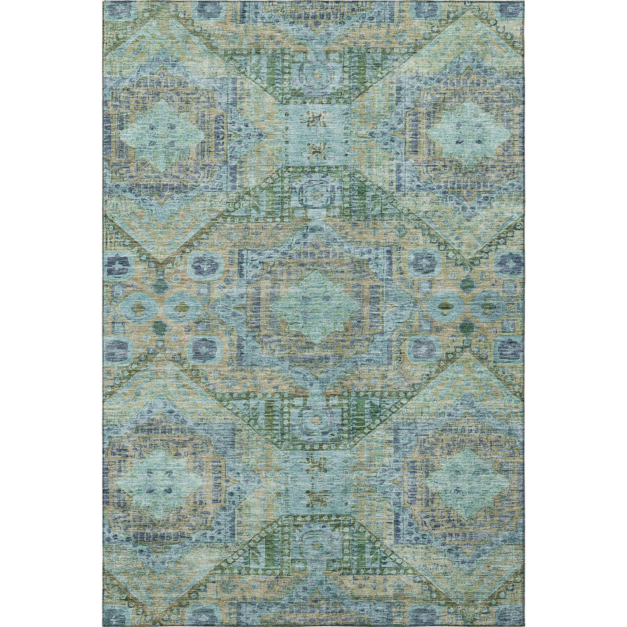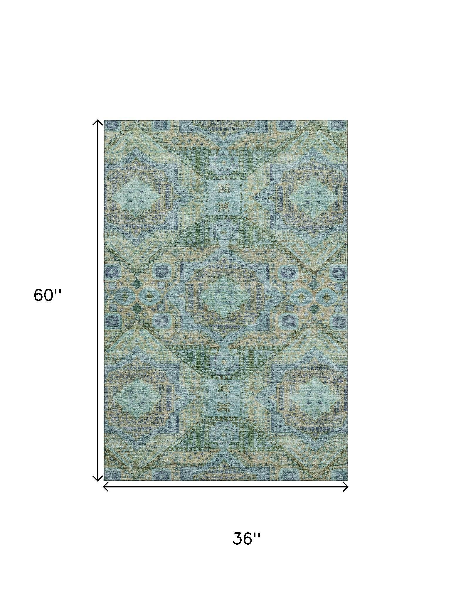 Set an inviting tone in your space with this 3-foot x 5-foot green blue and beige abstract geometric washable area rug with uv protection. Ideal for spaces with kids and pets, this rug is stain resistant to help repel dirt and spilled liquids. Built to last, this rug crafted from polyester fibers is known for its durability and long lasting appeal. Rugs are a great way to showcase your style, hide imperfections, warm your home and reduce noise. This smaller sized, traditional styled rug is just what you need for your walkway, bedside, in front of door, cabinet, refrigerator, or chair. 36.00-inch h x 60.00-inch w x 0.39-inch d.