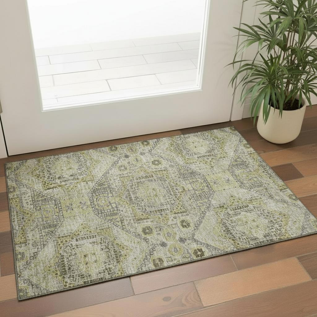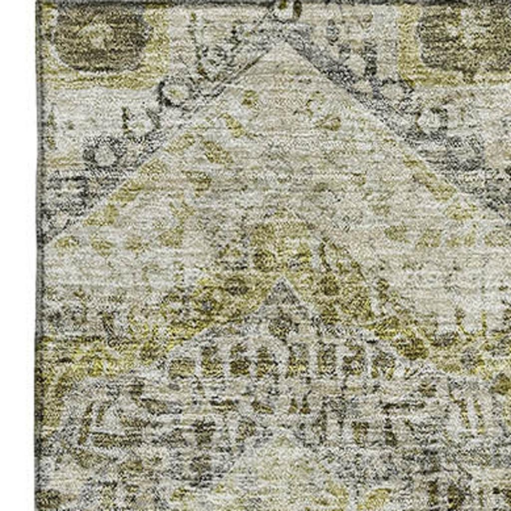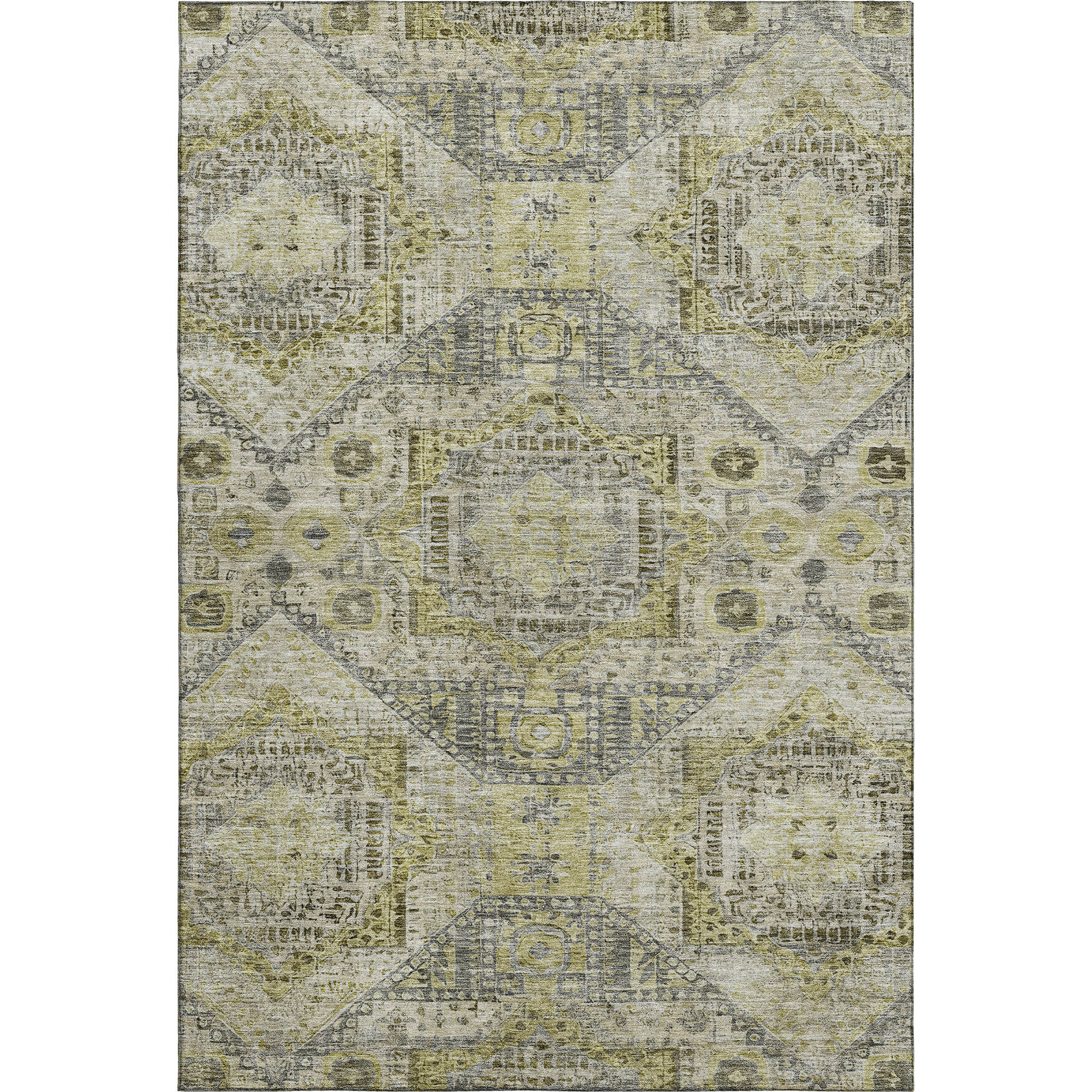 Set an inviting tone in your space with this 3-foot x 5-foot khaki beige and gray abstract geometric washable area rug with uv protection. Ideal for spaces with kids and pets, this rug is stain resistant to help repel dirt and spilled liquids. Built to last, this rug crafted from polyester fibers is known for its durability and long lasting appeal. Rugs are a great way to showcase your style, hide imperfections, warm your home and reduce noise. This smaller sized, traditional styled rug is just what you need for your walkway, bedside, in front of door, cabinet, refrigerator, or chair. 36.00-inch h x 60.00-inch w x 0.39-inch d.