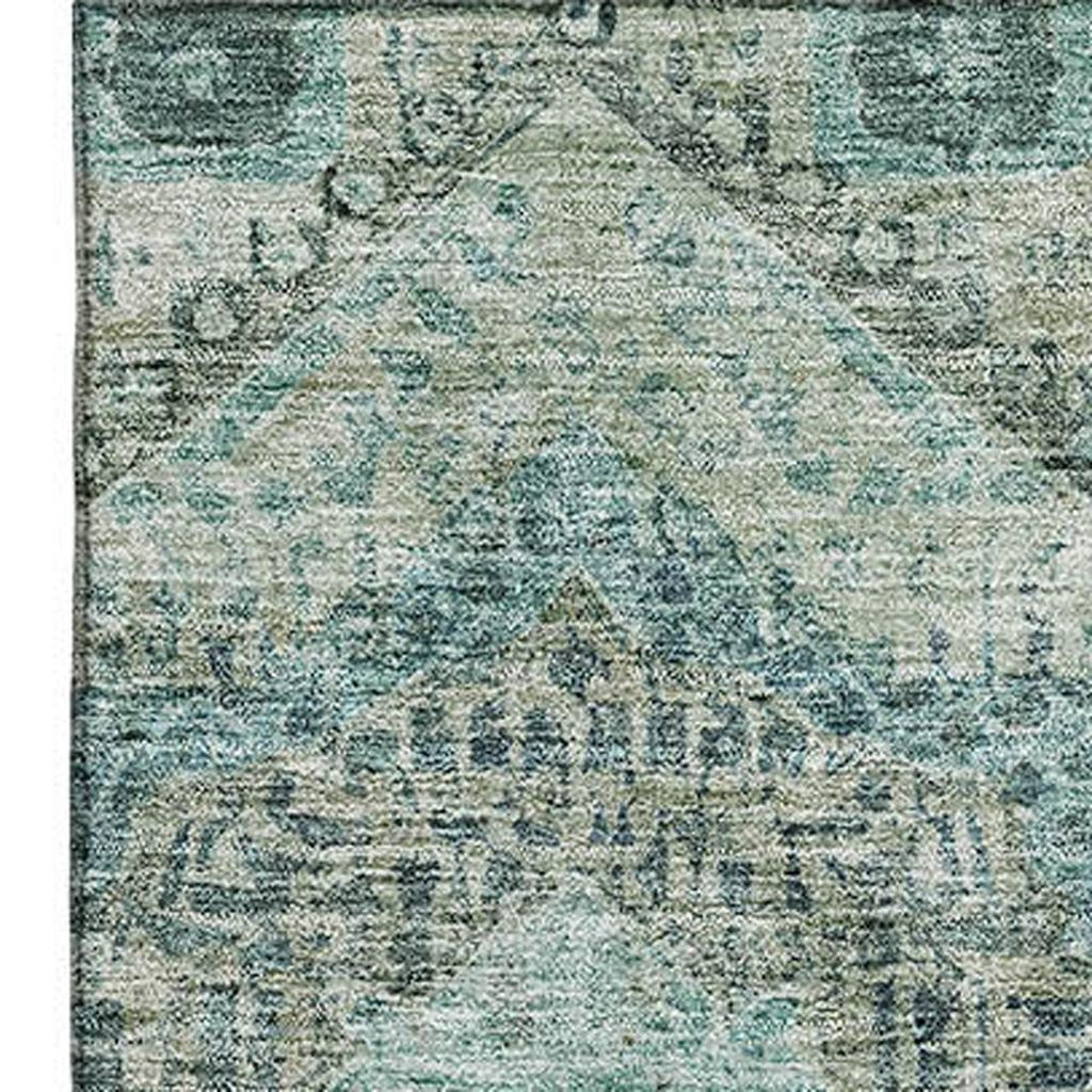 Add great coloration and comfortable texture to your space with this 8-foot x 10-foot sage and blue abstract geometric washable area rug with uv protection. Ideal for spaces with kids and pets, this rug is stain resistant to help repel dirt and spilled liquids. Built to last, this rug crafted from polyester fibers is known for its durability and long lasting appeal. Rugs are a great way to showcase your style, hide imperfections, warm your home and reduce noise. This larger sized, traditional styled rug is ready to create a focal point or statement piece in your room. 96.00-inch h x 120.00-inch w x 0.39-inch d.