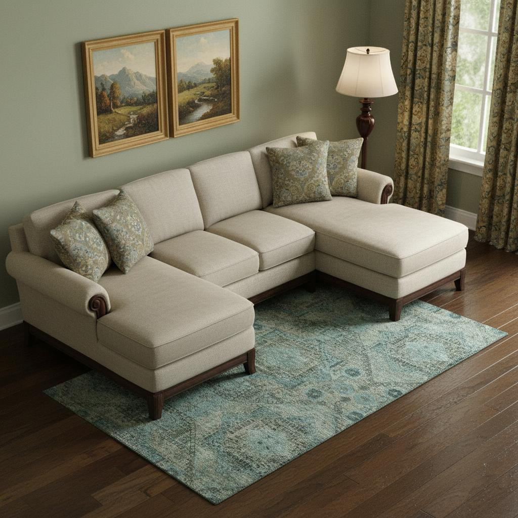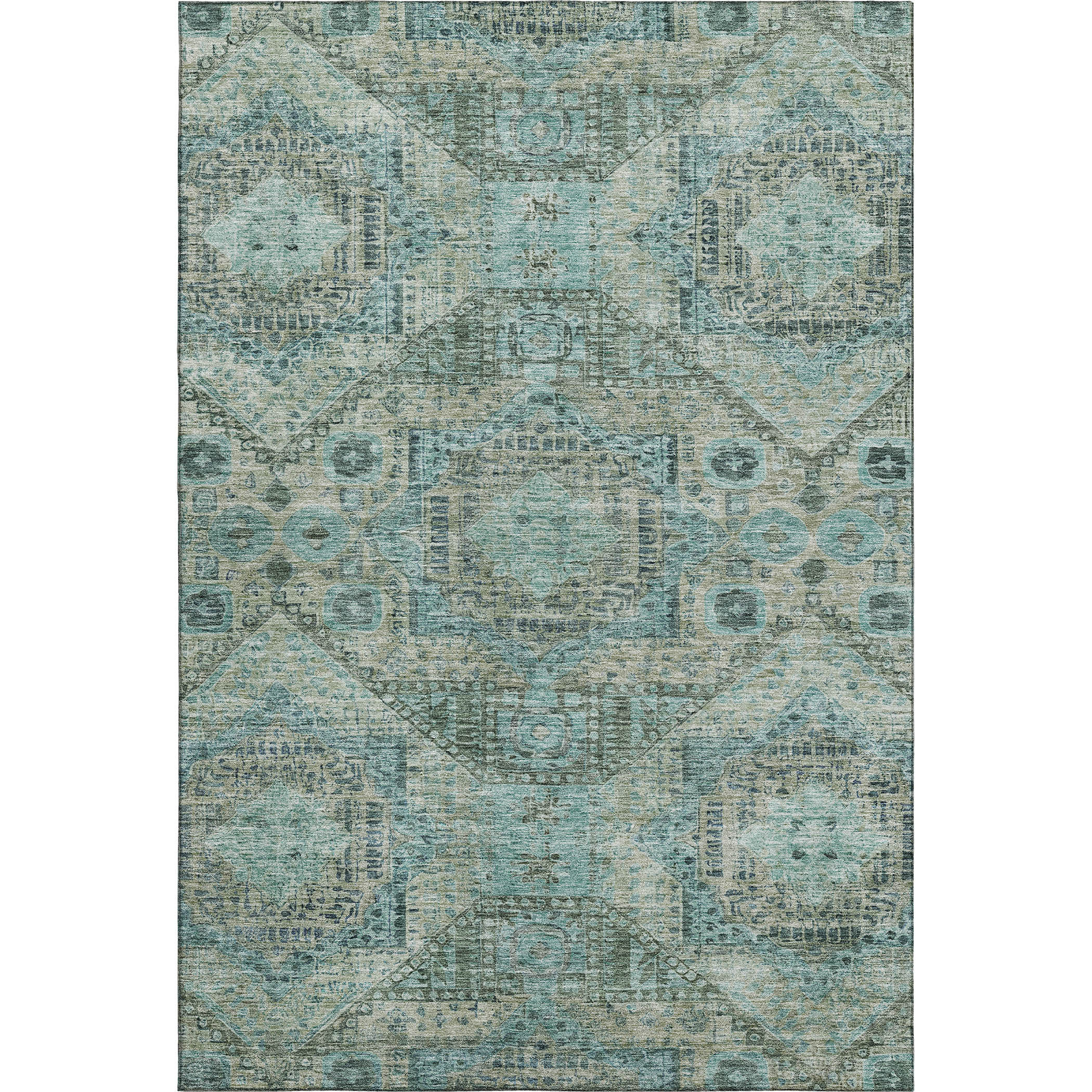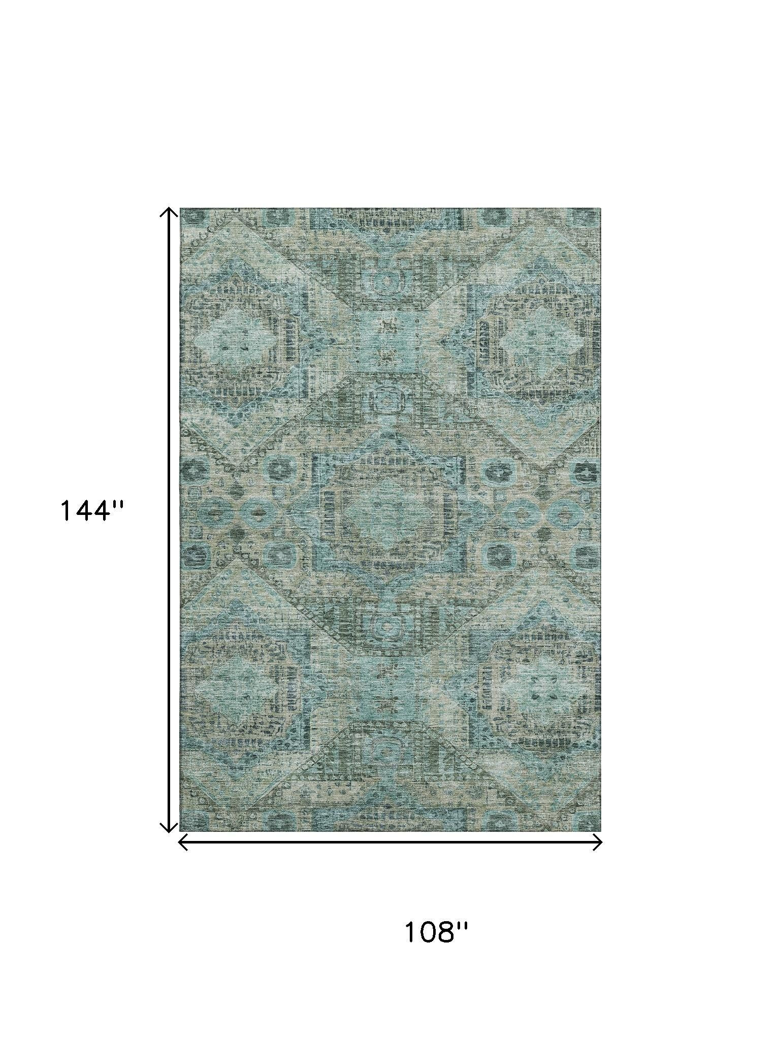 Add some artistry to your room with this 9-foot x 12-foot sage and blue abstract geometric washable area rug with uv protection. Ideal for spaces with kids and pets, this rug is stain resistant to help repel dirt and spilled liquids. Built to last, this rug crafted from polyester fibers is known for its durability and long lasting appeal. Rugs are a great way to showcase your style, hide imperfections, warm your home and reduce noise. This larger sized, traditional styled rug is ready to create a focal point or statement piece in your room. 108.00-inch h x 144.00-inch w x 0.39-inch d.