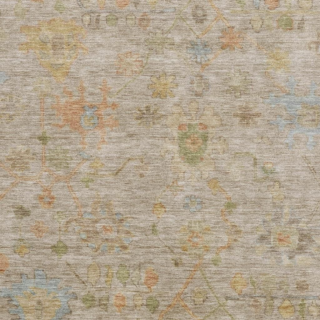 Set an inviting tone in your space with this 8-foot x 10-foot beige orange and blue floral washable area rug with uv protection. Ideal for spaces with kids and pets, this rug is stain resistant to help repel dirt and spilled liquids. Built to last, this rug crafted from polyester fibers is known for its durability and long lasting appeal. Rugs are a great way to showcase your style, hide imperfections, warm your home and reduce noise. This larger sized, traditional styled rug is ready to create a focal point or statement piece in your room. 96.00-inch h x 120.00-inch w x 0.39-inch d.