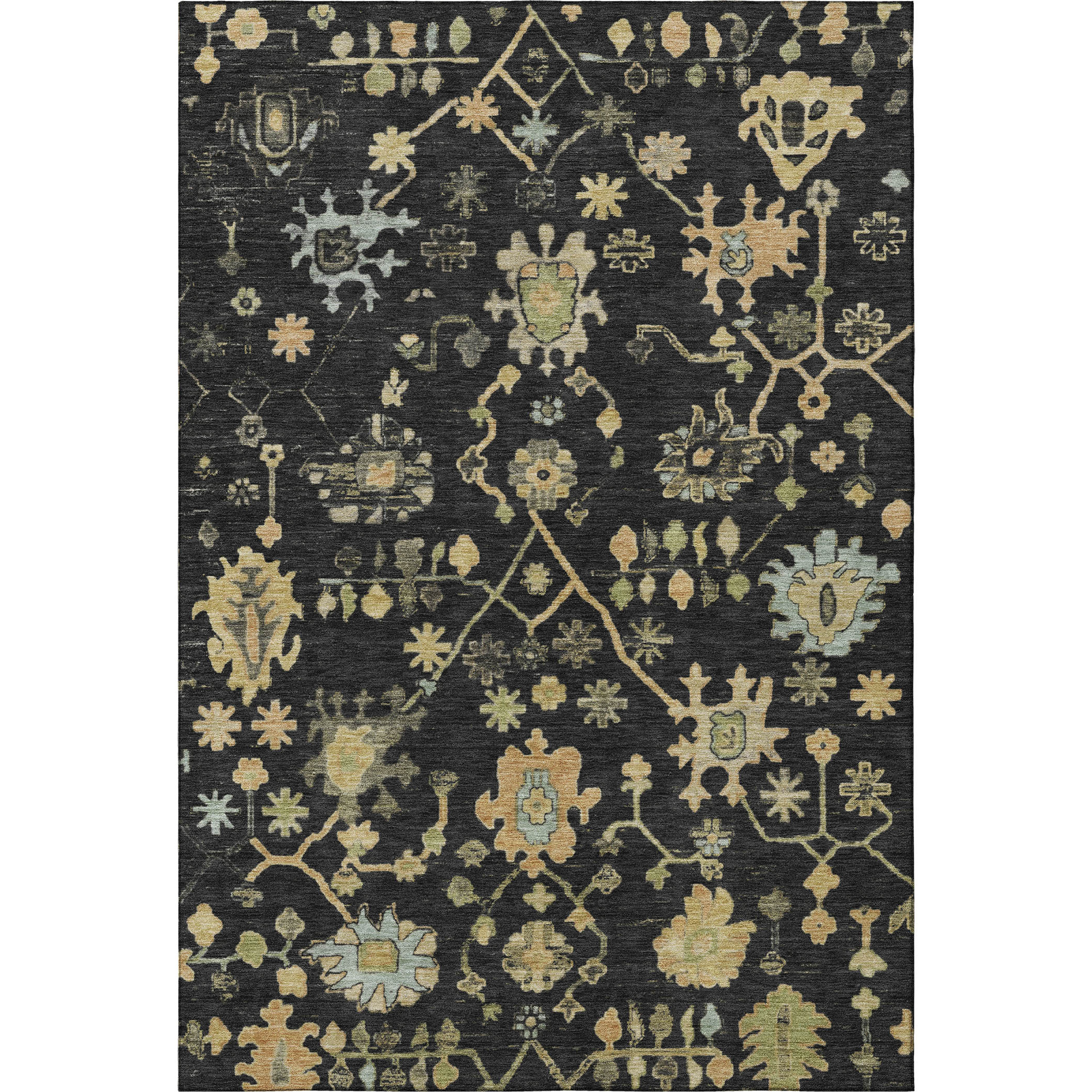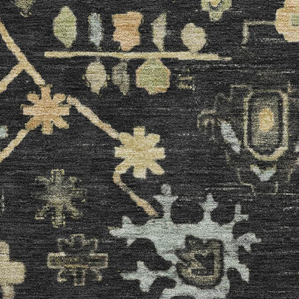 This 9-foot x 12-foot black gold and blue floral washable area rug with uv protection, is a great way to add warmth to a room. Ideal for spaces with kids and pets, this rug is stain resistant to help repel dirt and spilled liquids. Built to last, this rug crafted from polyester fibers is known for its durability and long lasting appeal. Rugs are a great way to showcase your style, hide imperfections, warm your home and reduce noise. This larger sized, traditional styled rug is ready to create a focal point or statement piece in your room. 108.00-inch h x 144.00-inch w x 0.39-inch d.