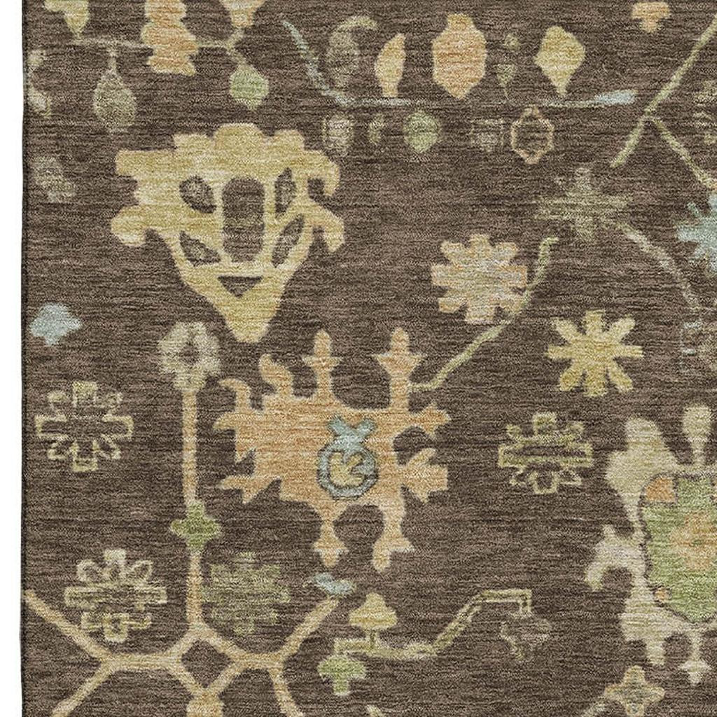 Add great coloration and comfortable texture to your space with this 9-foot x 12-foot brown gold and blue floral washable area rug with uv protection. Ideal for spaces with kids and pets, this rug is stain resistant to help repel dirt and spilled liquids. Built to last, this rug crafted from polyester fibers is known for its durability and long lasting appeal. Rugs are a great way to showcase your style, hide imperfections, warm your home and reduce noise. This larger sized, traditional styled rug is ready to create a focal point or statement piece in your room. 108.00-inch h x 144.00-inch w x 0.39-inch d.