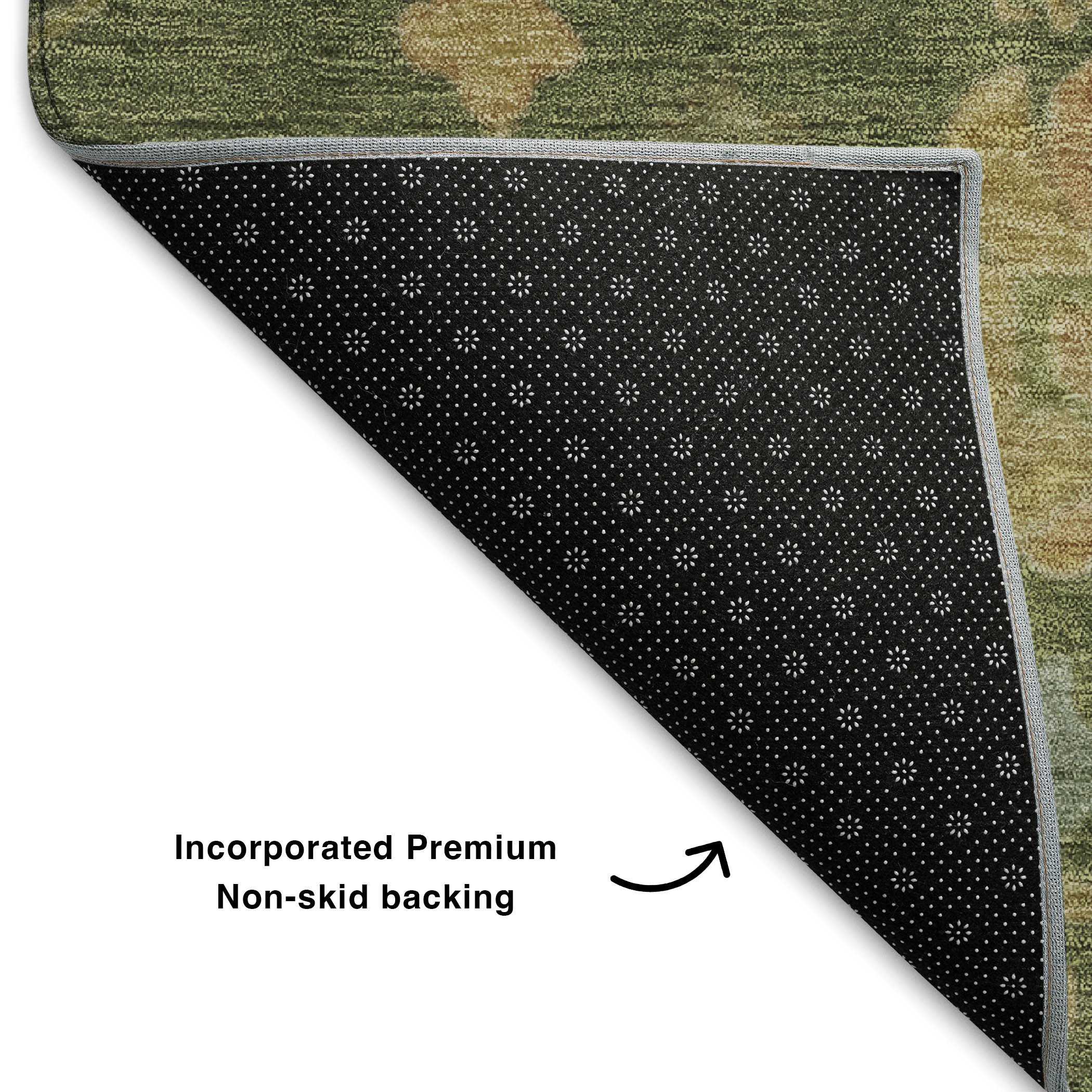 Set an inviting tone in your space with this 8-foot x 10-foot fern green gold and blue floral washable area rug with uv protection. Ideal for spaces with kids and pets, this rug is stain resistant to help repel dirt and spilled liquids. Built to last, this rug crafted from polyester fibers is known for its durability and long lasting appeal. Rugs are a great way to showcase your style, hide imperfections, warm your home and reduce noise. This larger sized, traditional styled rug is ready to create a focal point or statement piece in your room. 96.00-inch h x 120.00-inch w x 0.39-inch d.