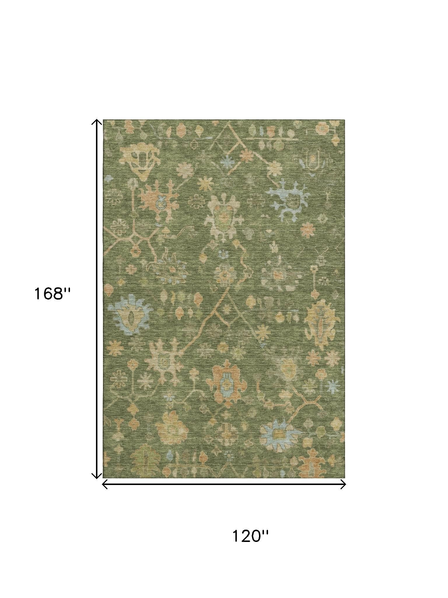Set an inviting tone in your space with this 10-foot x 14-foot fern green gold and blue floral washable area rug with uv protection. Ideal for spaces with kids and pets, this rug is stain resistant to help repel dirt and spilled liquids. Built to last, this rug crafted from polyester fibers is known for its durability and long lasting appeal. Rugs are a great way to showcase your style, hide imperfections, warm your home and reduce noise. This larger sized, traditional styled rug is ready to create a focal point or statement piece in your room. 120.00-inch h x 168.00-inch w x 0.39-inch d.