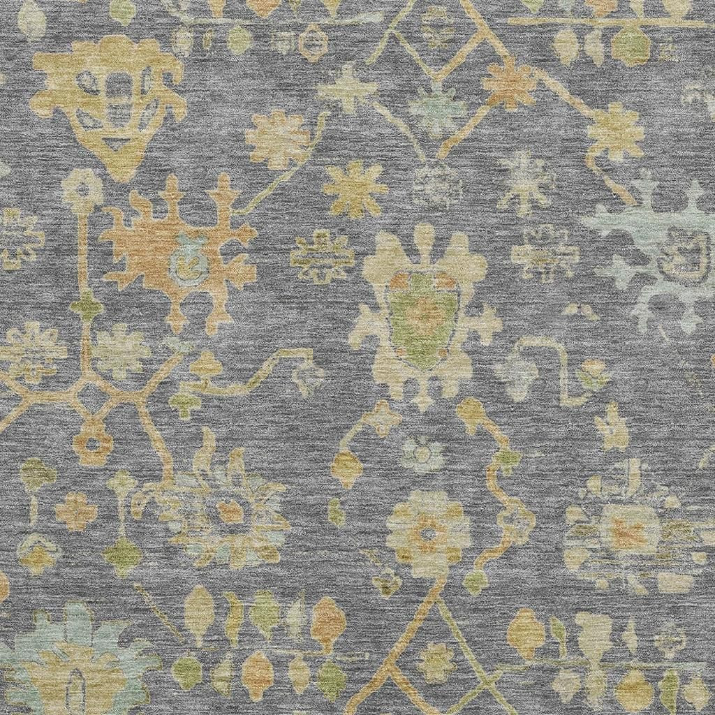 Add great coloration and comfortable texture to your space with this 9-foot x 12-foot gray gold and blue floral washable area rug with uv protection. Ideal for spaces with kids and pets, this rug is stain resistant to help repel dirt and spilled liquids. Built to last, this rug crafted from polyester fibers is known for its durability and long lasting appeal. Rugs are a great way to showcase your style, hide imperfections, warm your home and reduce noise. This larger sized, traditional styled rug is ready to create a focal point or statement piece in your room. 108.00-inch h x 144.00-inch w x 0.39-inch d.