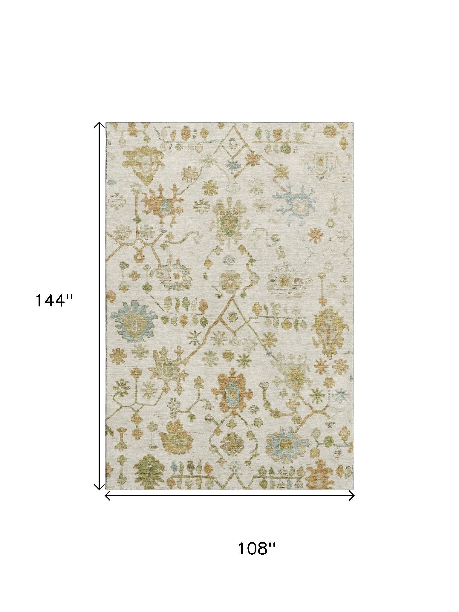 Add great coloration and comfortable texture to your space with this 9-foot x 12-foot ivory gold and blue floral washable area rug with uv protection. Ideal for spaces with kids and pets, this rug is stain resistant to help repel dirt and spilled liquids. Built to last, this rug crafted from polyester fibers is known for its durability and long lasting appeal. Rugs are a great way to showcase your style, hide imperfections, warm your home and reduce noise. This larger sized, traditional styled rug is ready to create a focal point or statement piece in your room. 108.00-inch h x 144.00-inch w x 0.39-inch d.