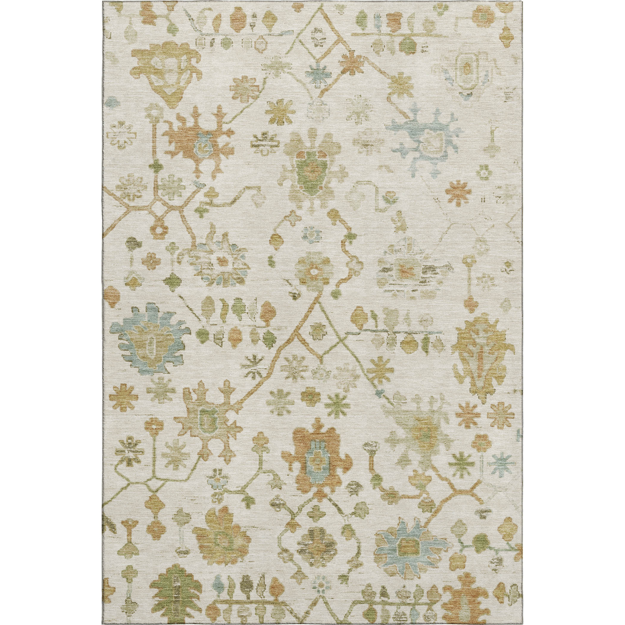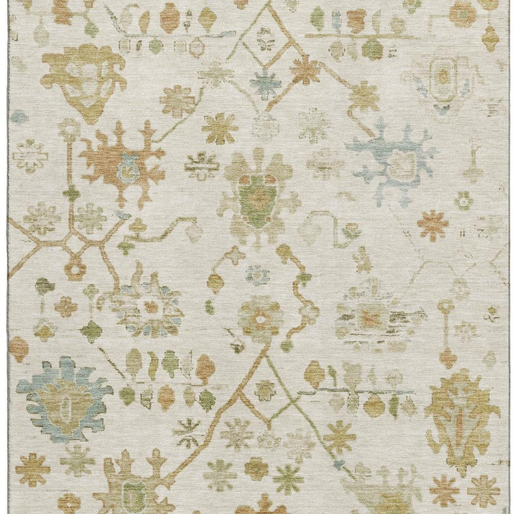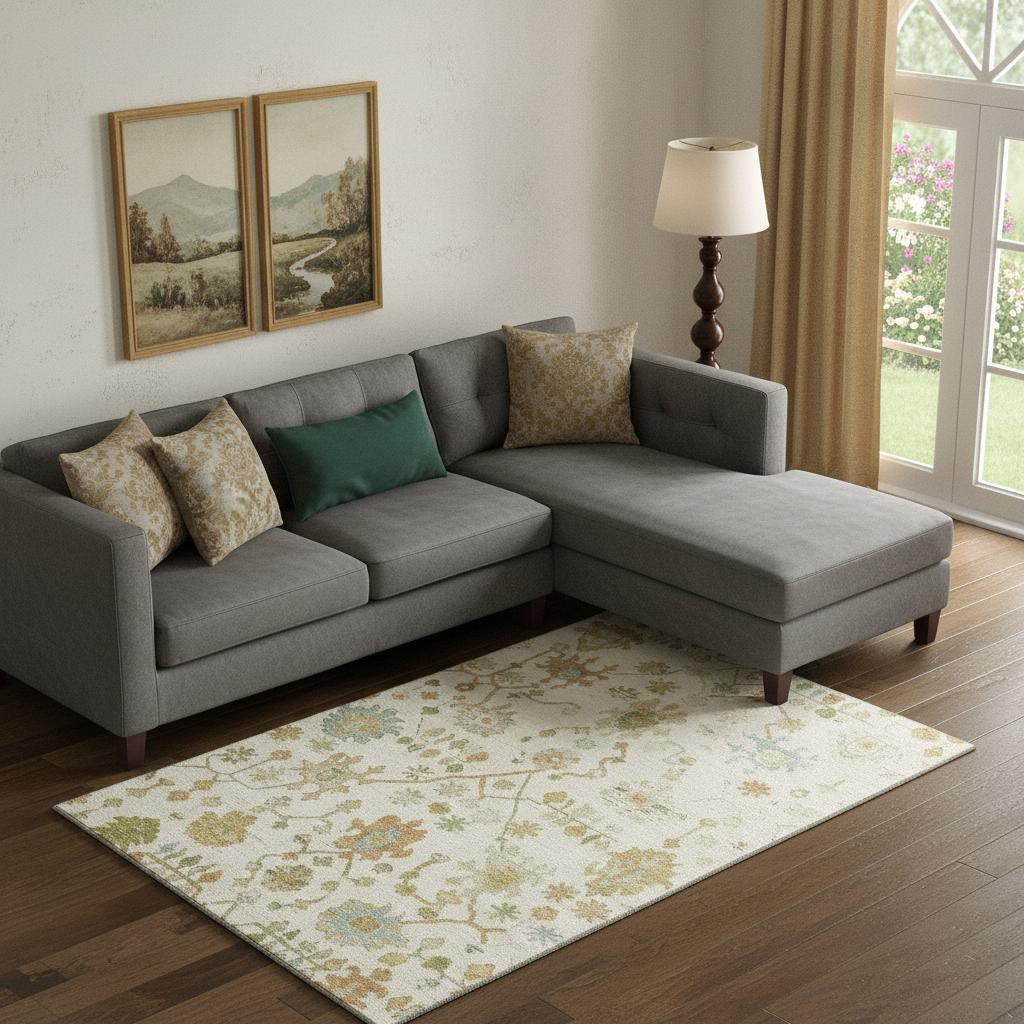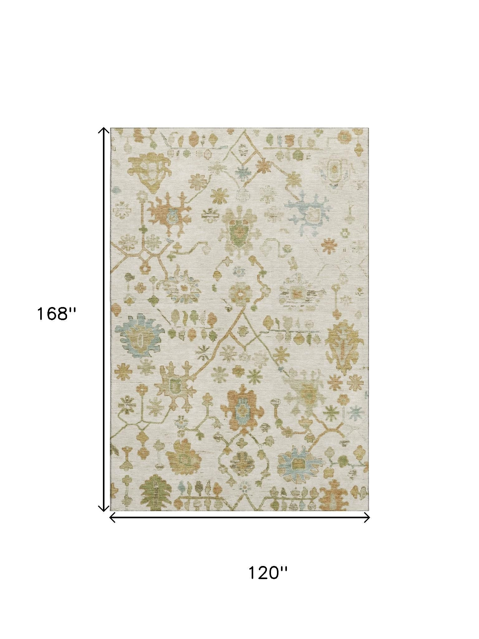 This 10-foot x 14-foot ivory gold and blue floral washable area rug with uv protection, is a great way to add warmth to a room. Ideal for spaces with kids and pets, this rug is stain resistant to help repel dirt and spilled liquids. Built to last, this rug crafted from polyester fibers is known for its durability and long lasting appeal. Rugs are a great way to showcase your style, hide imperfections, warm your home and reduce noise. This larger sized, traditional styled rug is ready to create a focal point or statement piece in your room. 120.00-inch h x 168.00-inch w x 0.39-inch d.