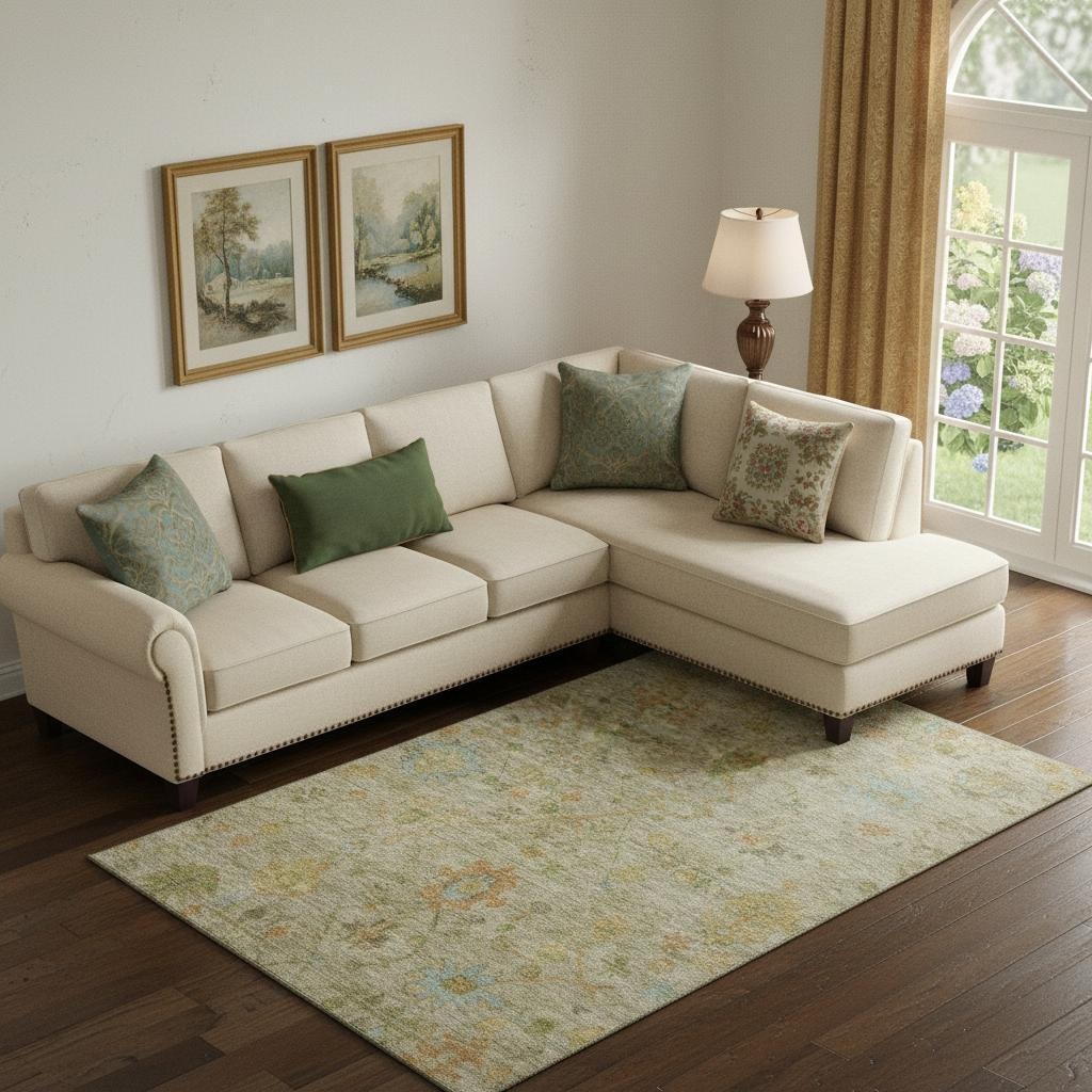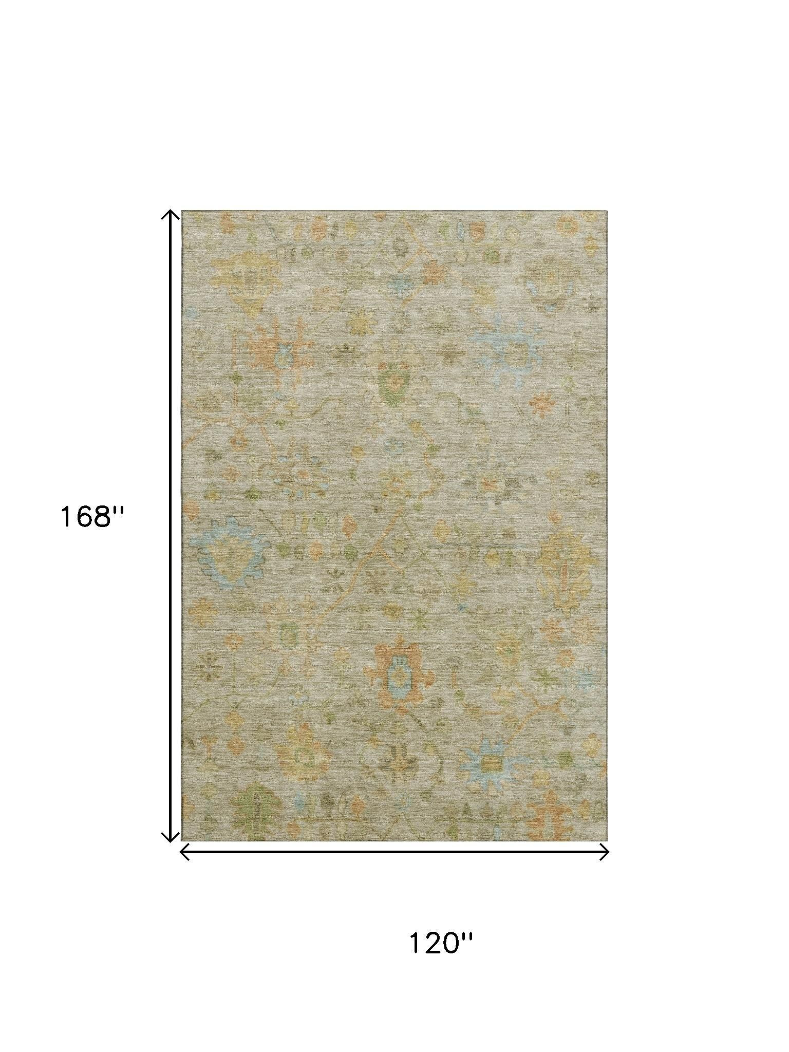 This 10-foot x 14-foot khaki gold and blue floral washable area rug with uv protection, is a great way to add warmth to a room. Ideal for spaces with kids and pets, this rug is stain resistant to help repel dirt and spilled liquids. Built to last, this rug crafted from polyester fibers is known for its durability and long lasting appeal. Rugs are a great way to showcase your style, hide imperfections, warm your home and reduce noise. This larger sized, traditional styled rug is ready to create a focal point or statement piece in your room. 120.00-inch h x 168.00-inch w x 0.39-inch d.
