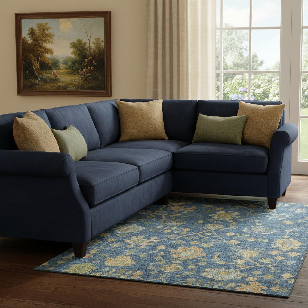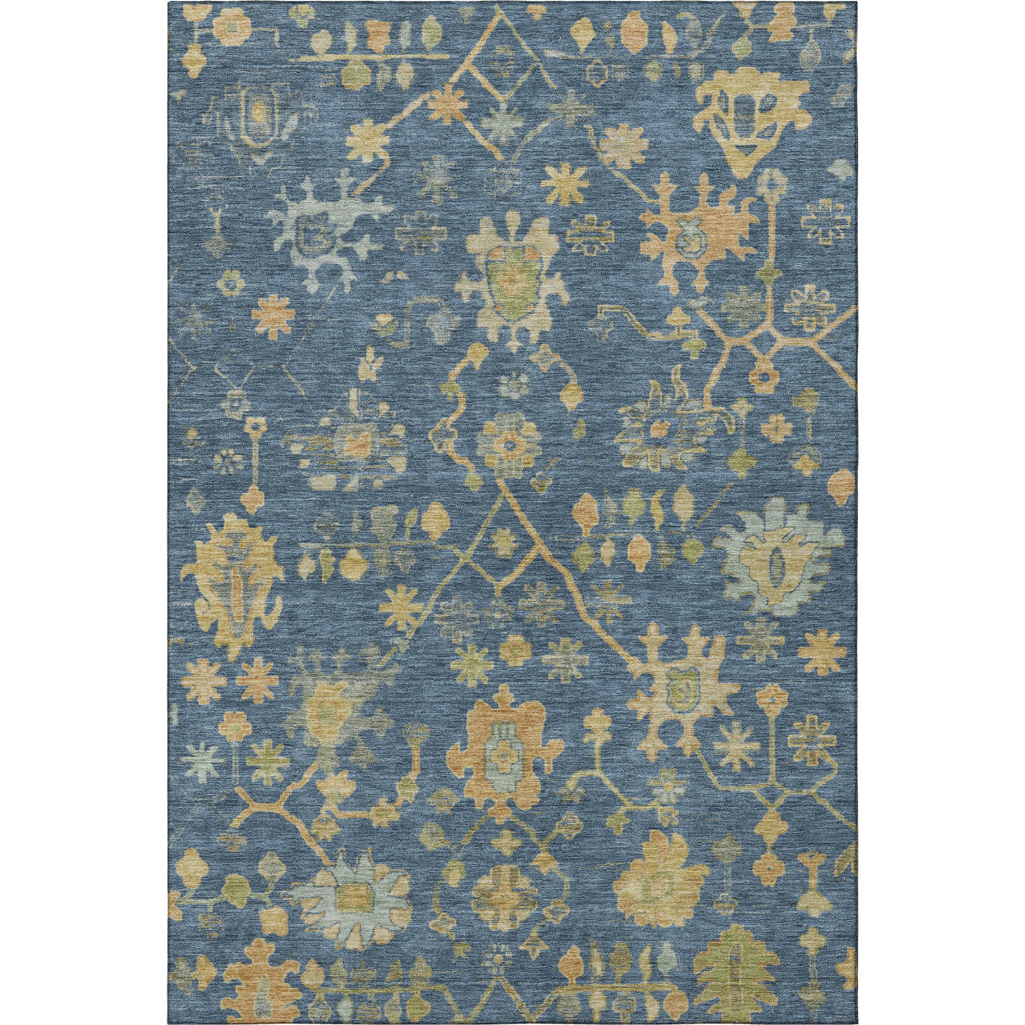 Add some artistry to your room with this 8-foot x 10-foot navy blue and gold floral washable area rug with uv protection. Ideal for spaces with kids and pets, this rug is stain resistant to help repel dirt and spilled liquids. Built to last, this rug crafted from polyester fibers is known for its durability and long lasting appeal. Rugs are a great way to showcase your style, hide imperfections, warm your home and reduce noise. This larger sized, traditional styled rug is ready to create a focal point or statement piece in your room. 96.00-inch h x 120.00-inch w x 0.39-inch d.