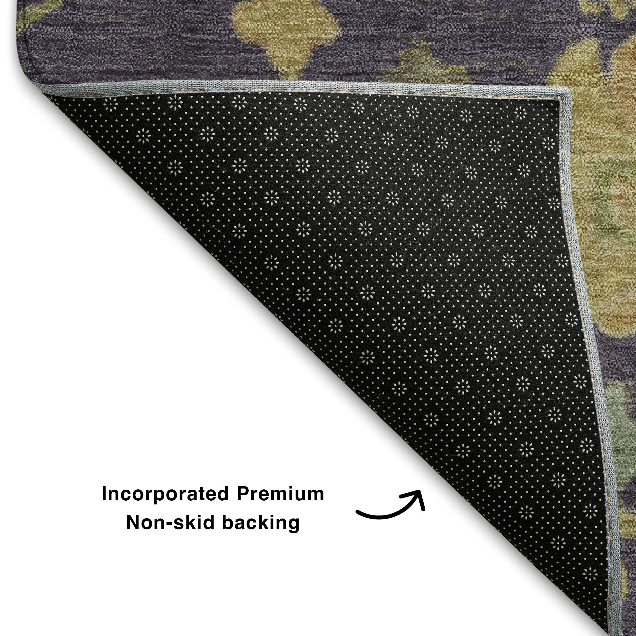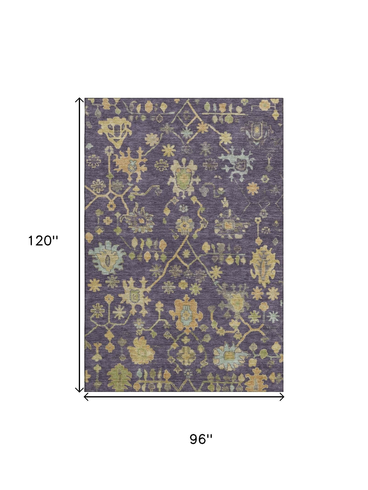 Set an inviting tone in your space with this 8-foot x 10-foot purple gold and blue floral washable area rug with uv protection. Ideal for spaces with kids and pets, this rug is stain resistant to help repel dirt and spilled liquids. Built to last, this rug crafted from polyester fibers is known for its durability and long lasting appeal. Rugs are a great way to showcase your style, hide imperfections, warm your home and reduce noise. This larger sized, traditional styled rug is ready to create a focal point or statement piece in your room. 96.00-inch h x 120.00-inch w x 0.39-inch d.