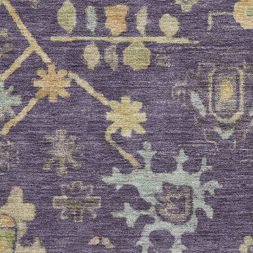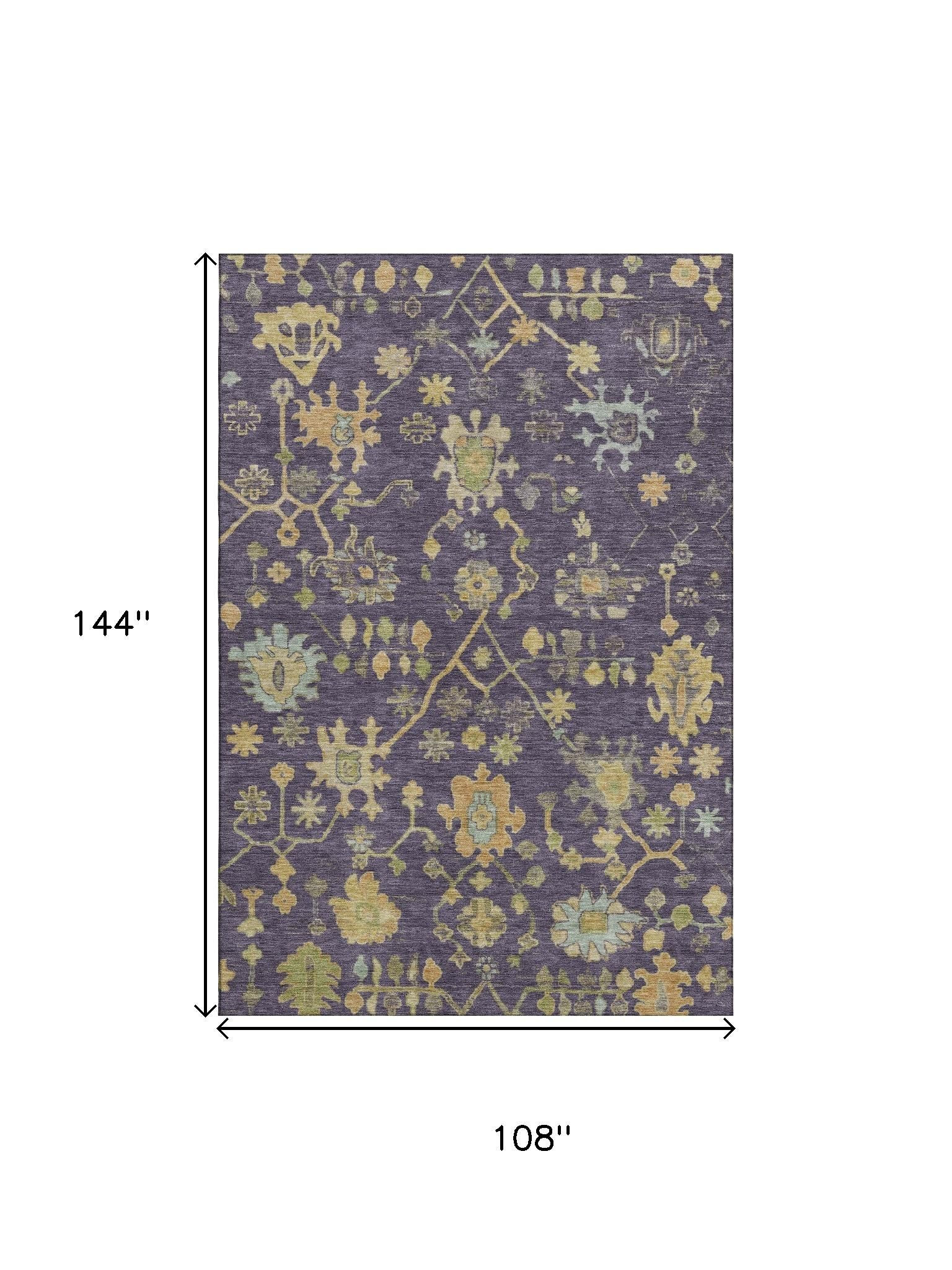 Add great coloration and comfortable texture to your space with this 9-foot x 12-foot purple gold and blue floral washable area rug with uv protection. Ideal for spaces with kids and pets, this rug is stain resistant to help repel dirt and spilled liquids. Built to last, this rug crafted from polyester fibers is known for its durability and long lasting appeal. Rugs are a great way to showcase your style, hide imperfections, warm your home and reduce noise. This larger sized, traditional styled rug is ready to create a focal point or statement piece in your room. 108.00-inch h x 144.00-inch w x 0.39-inch d.
