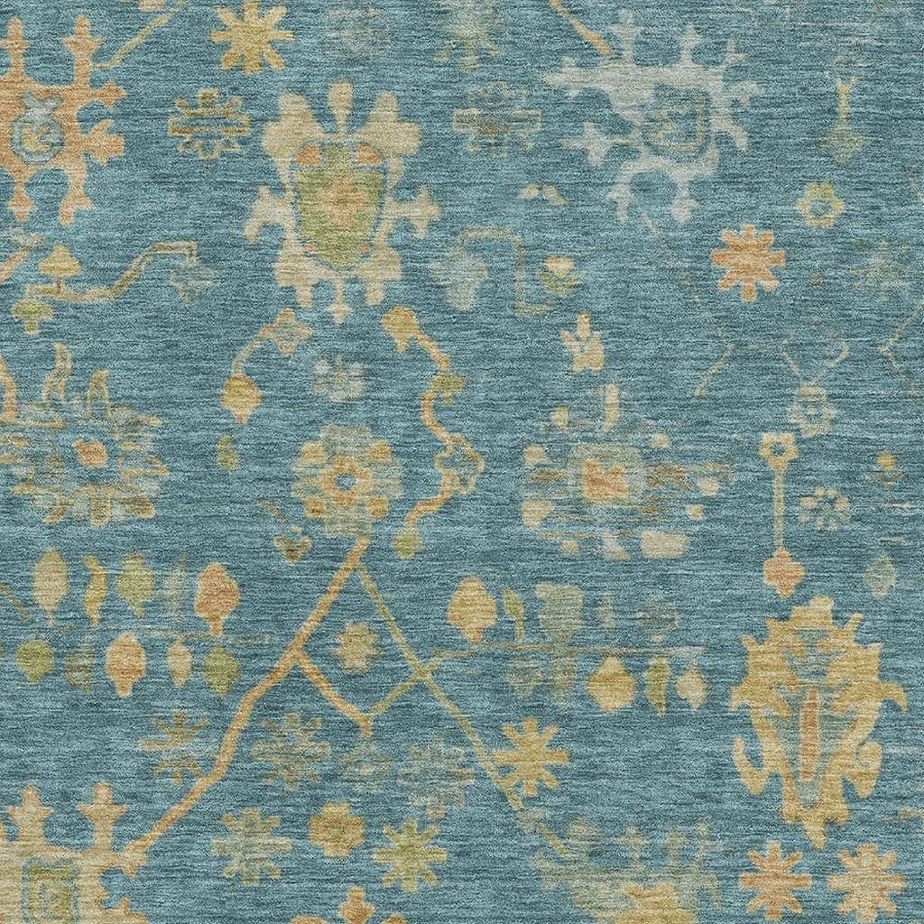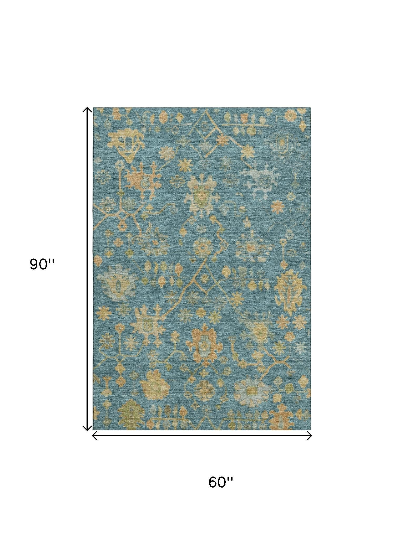 Add great coloration and comfortable texture to your space with this 5-foot x 8-foot teal gold and blue floral washable area rug with uv protection. Ideal for spaces with kids and pets, this rug is stain resistant to help repel dirt and spilled liquids. Built to last, this rug crafted from polyester fibers is known for its durability and long lasting appeal. Rugs are a great way to showcase your style, hide imperfections, warm your home and reduce noise. This larger sized, traditional styled rug is ready to create a focal point or statement piece in your room. 60.00-inch h x 90.00-inch w x 0.39-inch d.