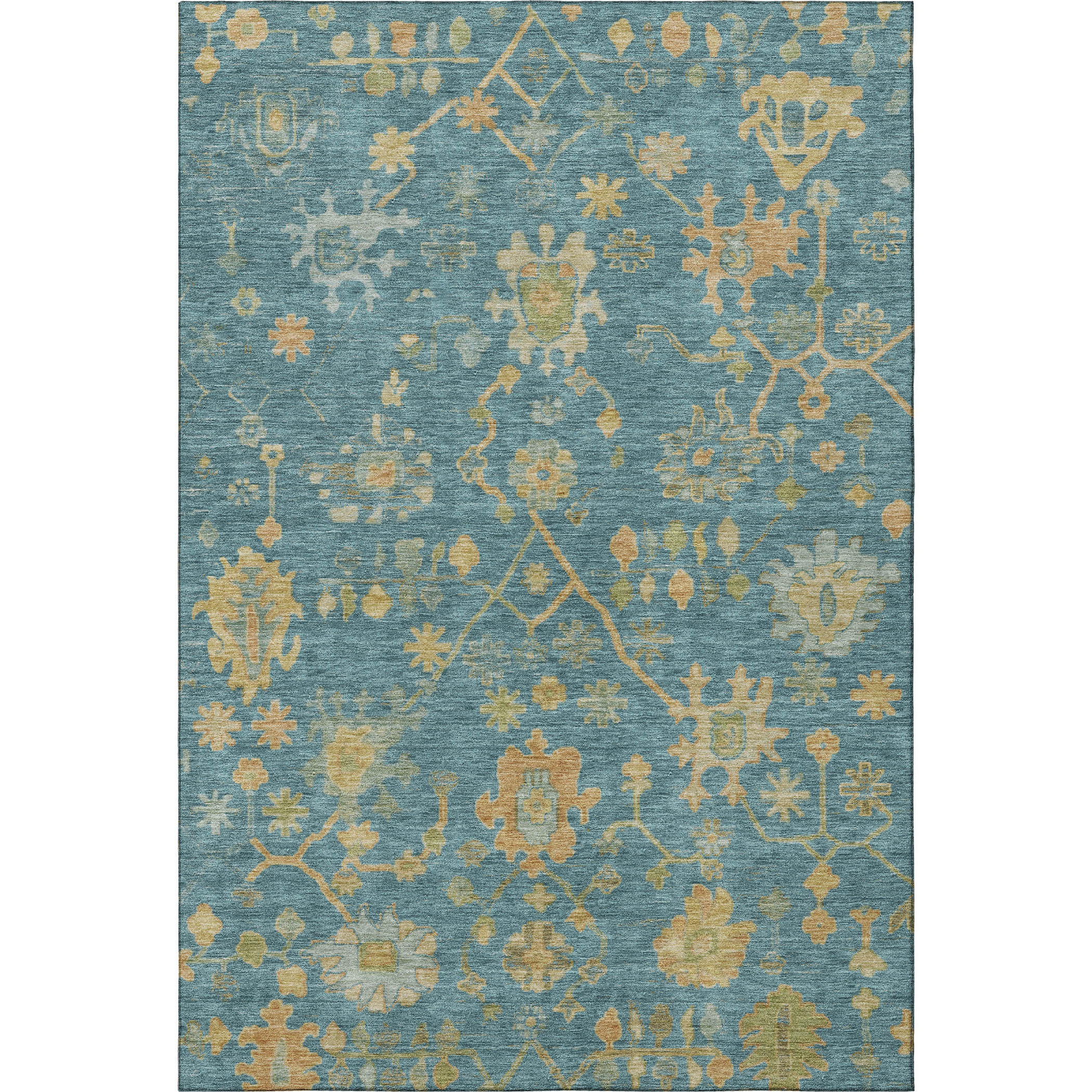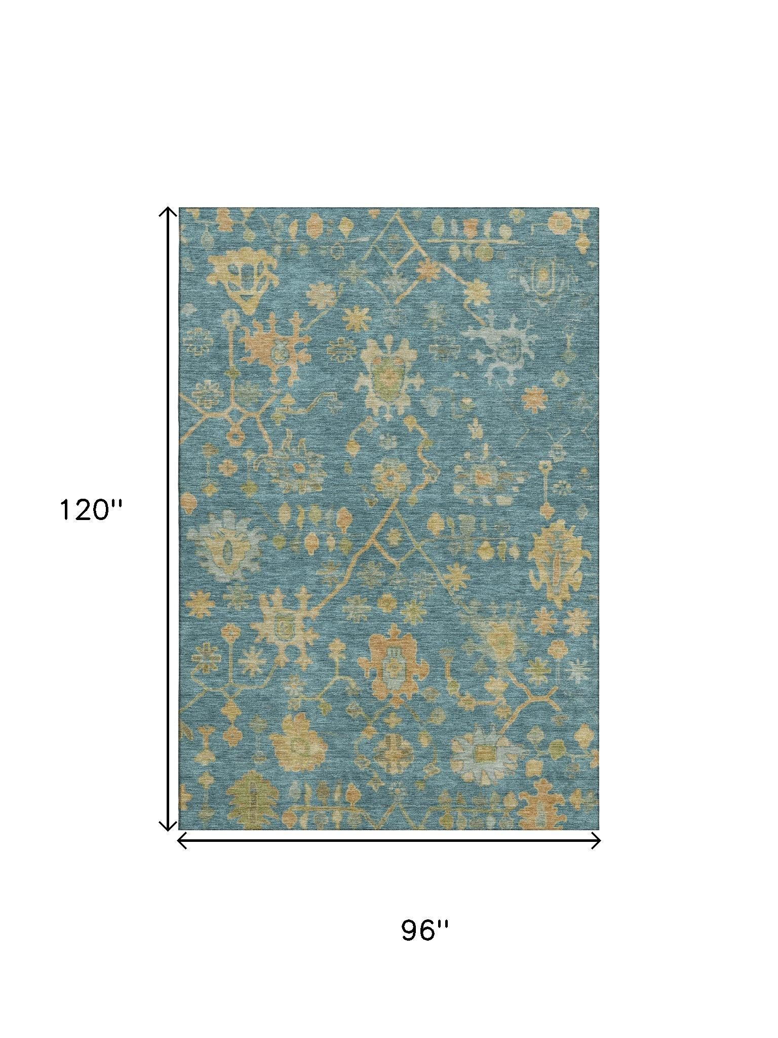 This 8-foot x 10-foot teal gold and blue floral washable area rug with uv protection, is a great way to add warmth to a room. Ideal for spaces with kids and pets, this rug is stain resistant to help repel dirt and spilled liquids. Built to last, this rug crafted from polyester fibers is known for its durability and long lasting appeal. Rugs are a great way to showcase your style, hide imperfections, warm your home and reduce noise. This larger sized, traditional styled rug is ready to create a focal point or statement piece in your room. 96.00-inch h x 120.00-inch w x 0.39-inch d.