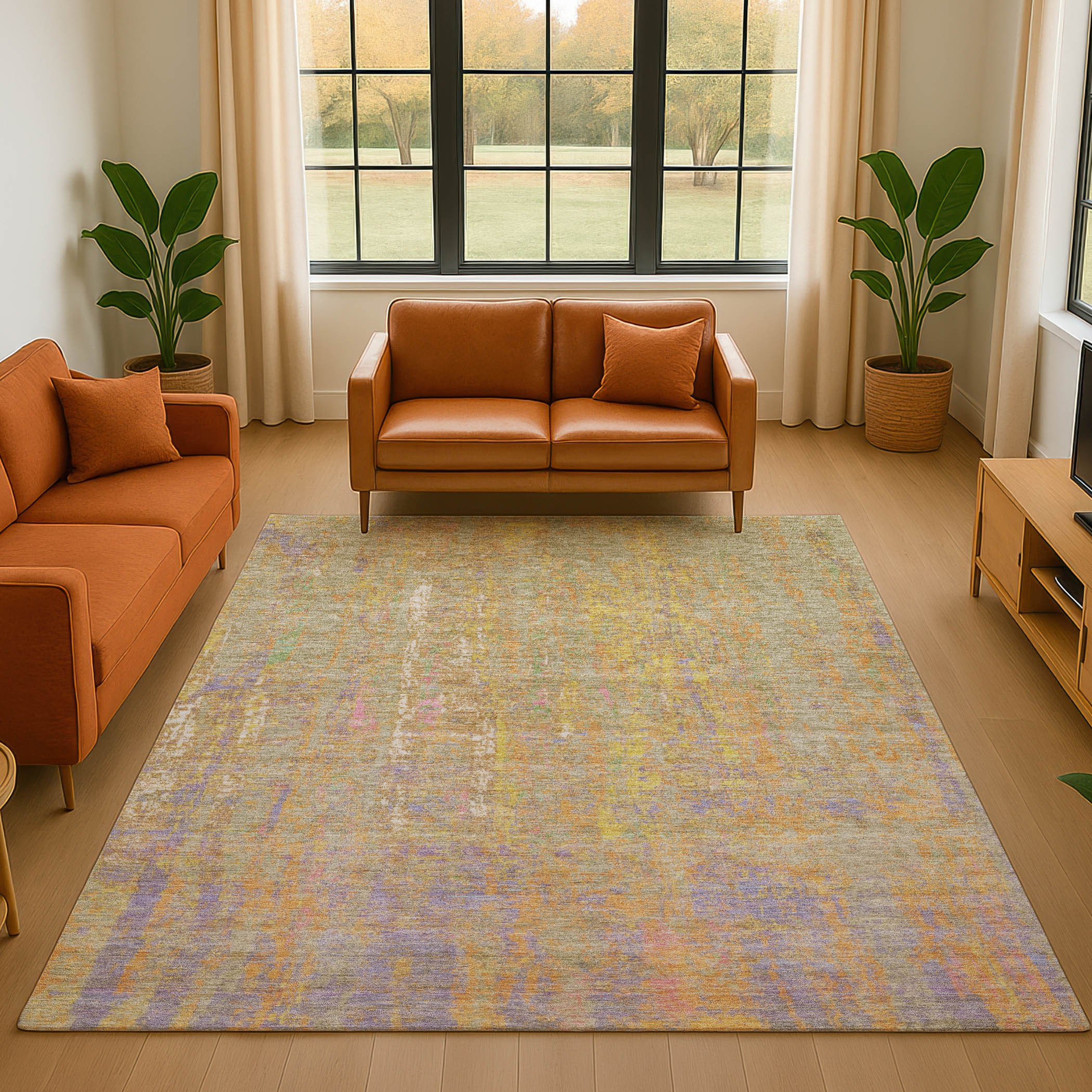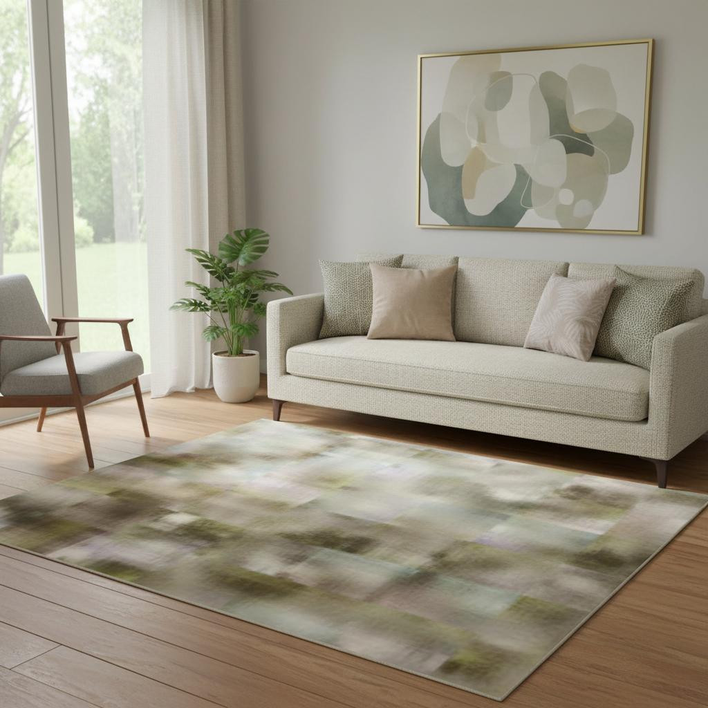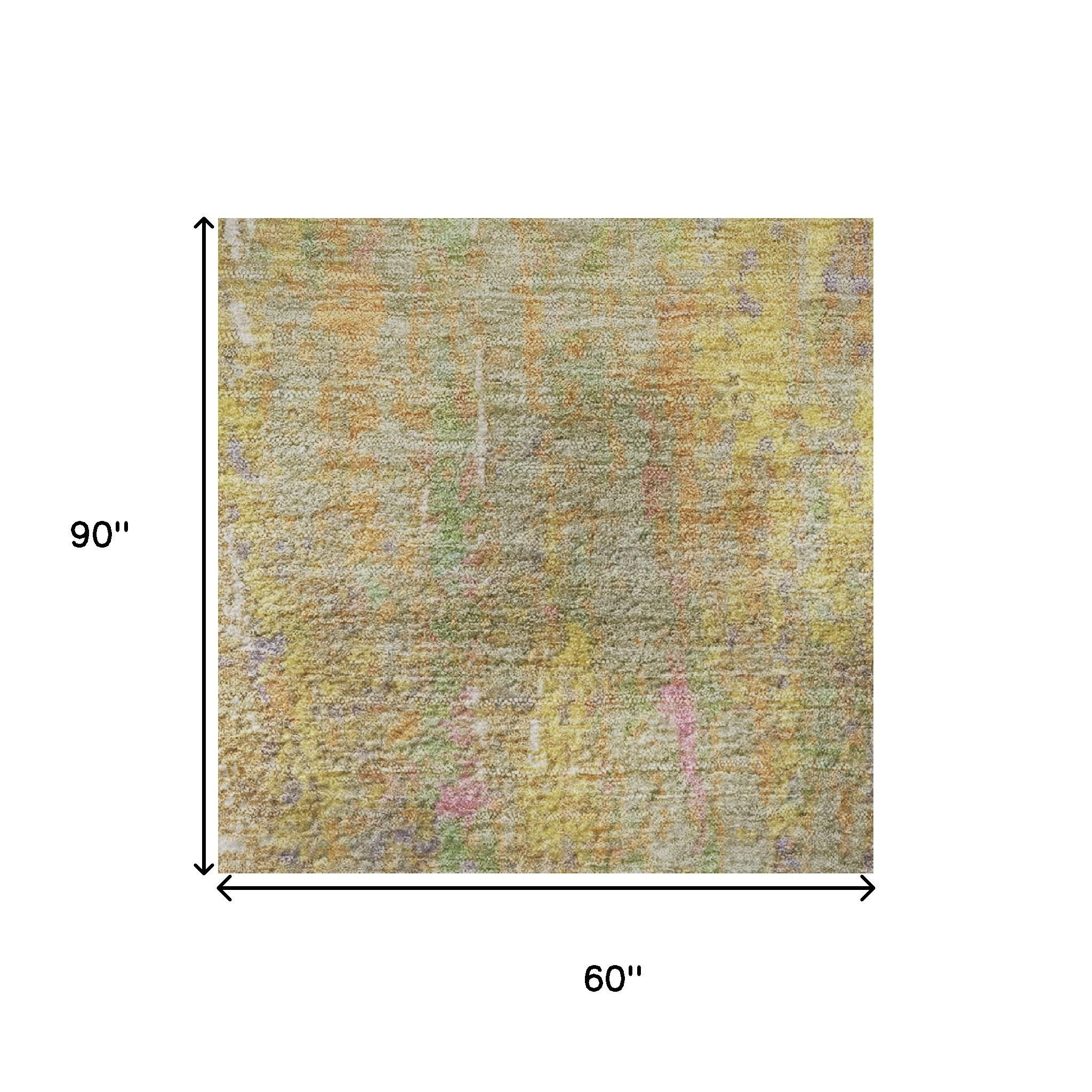 Set an inviting tone in your space with this 5-foot x 8-foot green purple and gold abstract washable area rug with uv protection. Ideal for spaces with kids and pets, this rug is stain resistant to help repel dirt and spilled liquids. Built to last, this rug crafted from polyester fibers is known for its durability and long lasting appeal. Rugs are a great way to showcase your style, hide imperfections, warm your home and reduce noise. This larger sized, transitional styled rug is ready to create a focal point or statement piece in your room. 60.00-inch h x 90.00-inch w x 0.39-inch d.