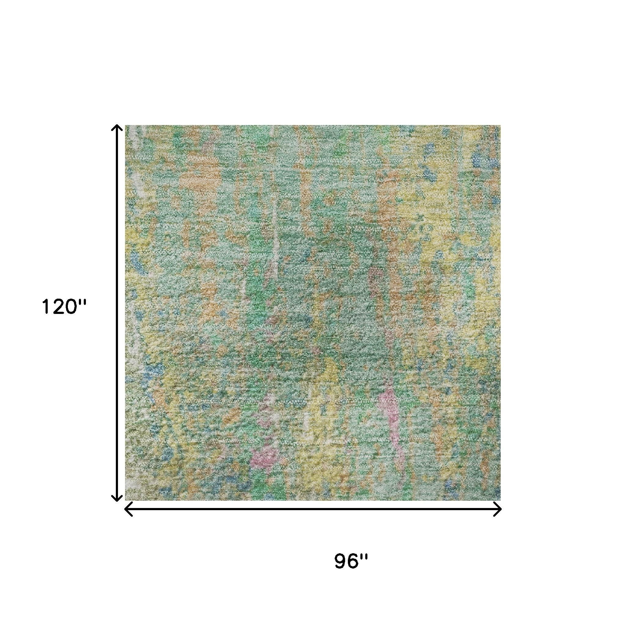 Add great coloration and comfortable texture to your space with this 8-foot x 10-foot teal purple and gold abstract washable area rug with uv protection. Ideal for spaces with kids and pets, this rug is stain resistant to help repel dirt and spilled liquids. Built to last, this rug crafted from polyester fibers is known for its durability and long lasting appeal. Rugs are a great way to showcase your style, hide imperfections, warm your home and reduce noise. This larger sized, transitional styled rug is ready to create a focal point or statement piece in your room. 96.00-inch h x 120.00-inch w x 0.39-inch d.