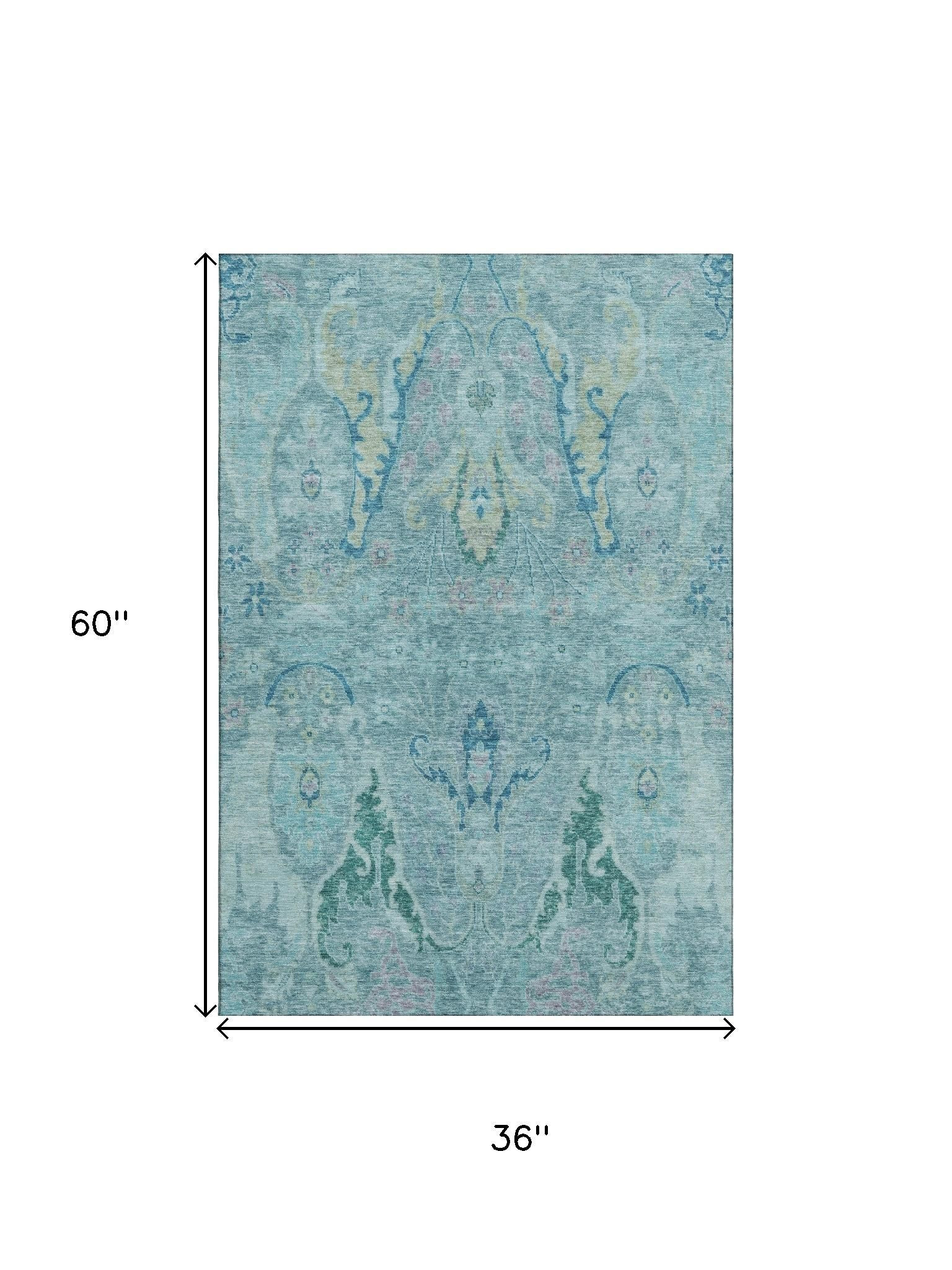 This 3-foot x 5-foot blue teal and artichoke green floral washable area rug with uv protection, is a great way to add warmth to a room. Ideal for spaces with kids and pets, this rug is stain resistant to help repel dirt and spilled liquids. Built to last, this rug crafted from polyester fibers is known for its durability and long lasting appeal. Rugs are a great way to showcase your style, hide imperfections, warm your home and reduce noise. This smaller sized, transitional styled rug is just what you need for your walkway, bedside, in front of door, cabinet, refrigerator, or chair. 36.00-inch h x 60.00-inch w x 0.39-inch d.