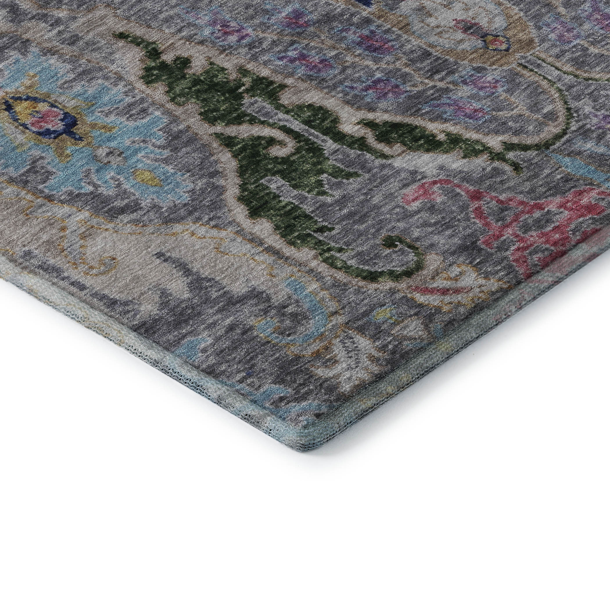 Set an inviting tone in your space with this 5-foot x 8-foot gray blue and gold floral washable area rug with uv protection. Ideal for spaces with kids and pets, this rug is stain resistant to help repel dirt and spilled liquids. Built to last, this rug crafted from polyester fibers is known for its durability and long lasting appeal. Rugs are a great way to showcase your style, hide imperfections, warm your home and reduce noise. This larger sized, transitional styled rug is ready to create a focal point or statement piece in your room. 60.00-inch h x 90.00-inch w x 0.39-inch d.