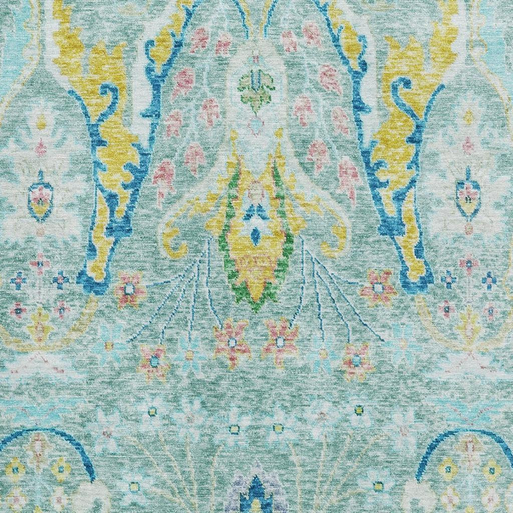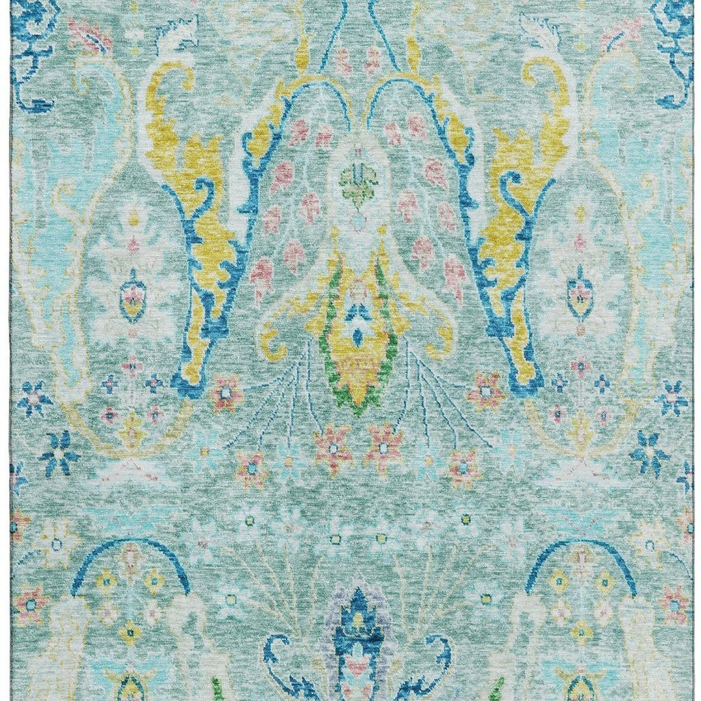 Set an inviting tone in your space with this 10-foot x 14-foot teal gold and blue floral washable area rug with uv protection. Ideal for spaces with kids and pets, this rug is stain resistant to help repel dirt and spilled liquids. Built to last, this rug crafted from polyester fibers is known for its durability and long lasting appeal. Rugs are a great way to showcase your style, hide imperfections, warm your home and reduce noise. This larger sized, transitional styled rug is ready to create a focal point or statement piece in your room. 120.00-inch h x 168.00-inch w x 0.39-inch d.