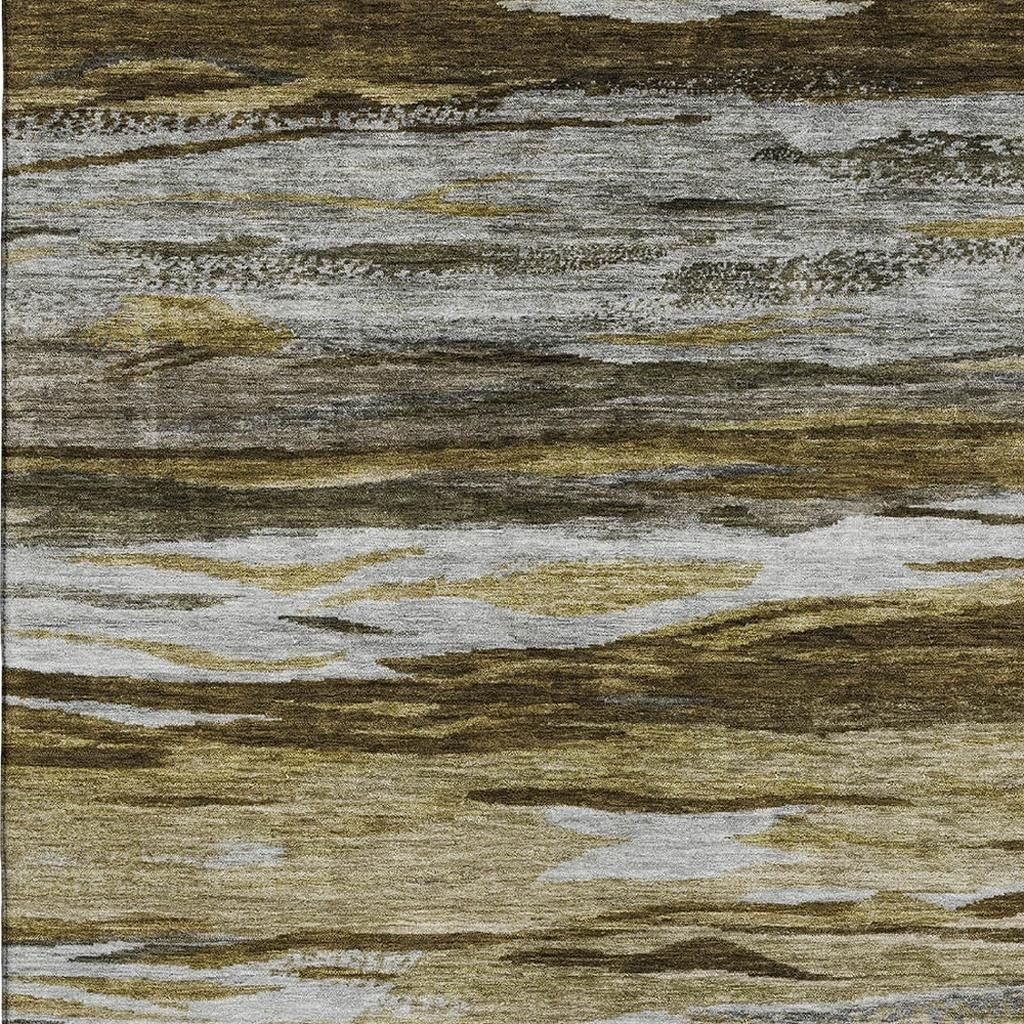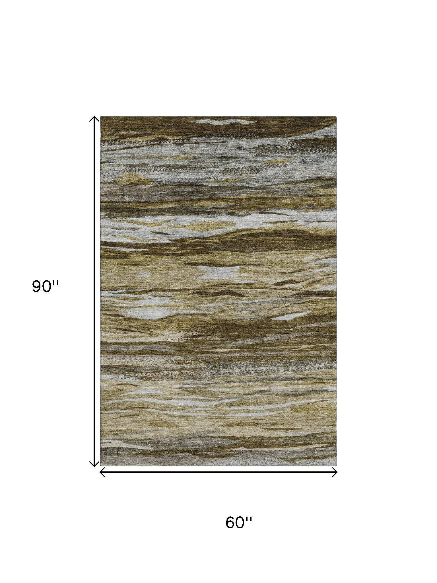 Add some artistry to your room with this 5-foot x 8-foot brown beige and taupe abstract washable area rug with uv protection. Ideal for spaces with kids and pets, this rug is stain resistant to help repel dirt and spilled liquids. Built to last, this rug crafted from polyester fibers is known for its durability and long lasting appeal. Rugs are a great way to showcase your style, hide imperfections, warm your home and reduce noise. This larger sized, transitional styled rug is ready to create a focal point or statement piece in your room. 60.00-inch h x 90.00-inch w x 0.39-inch d.