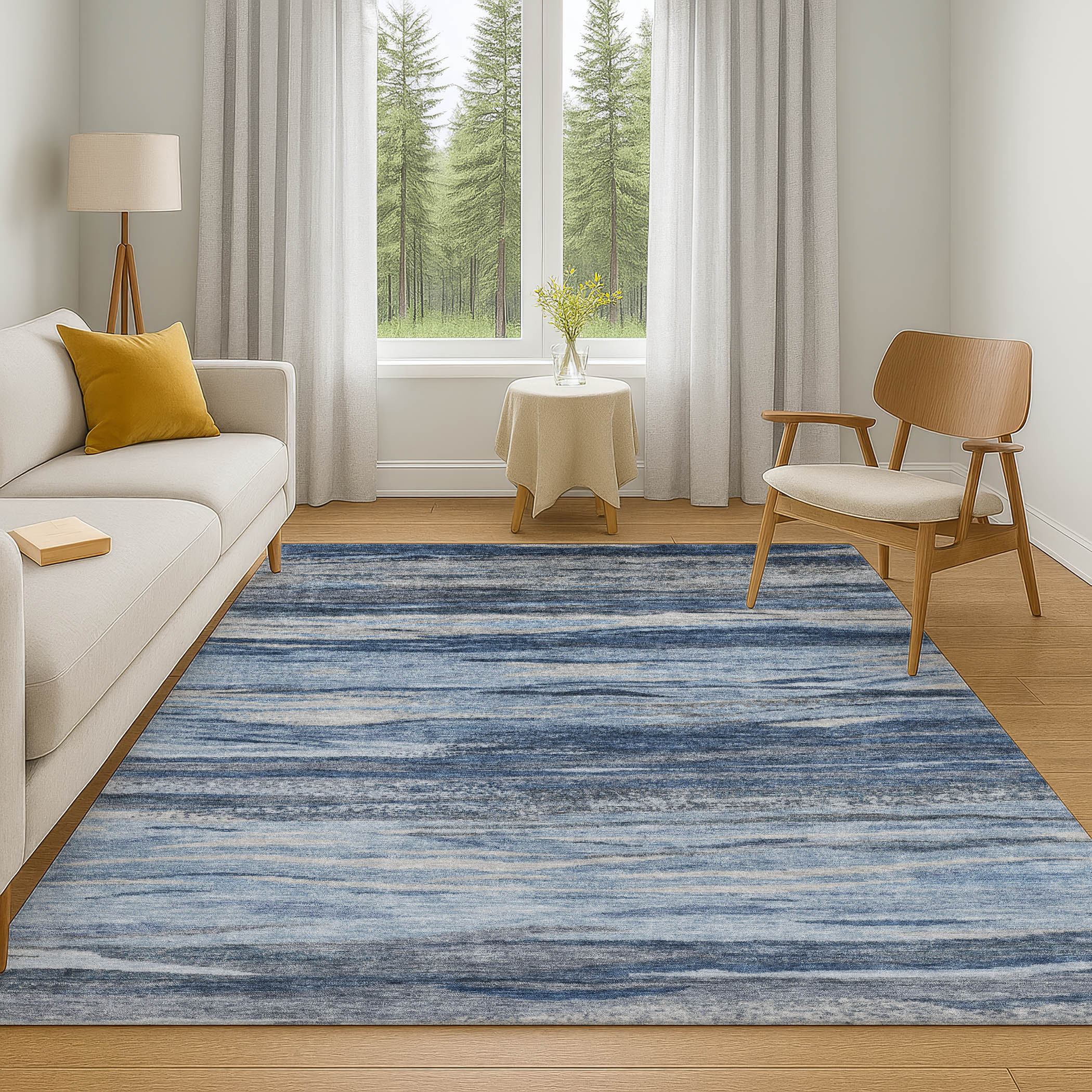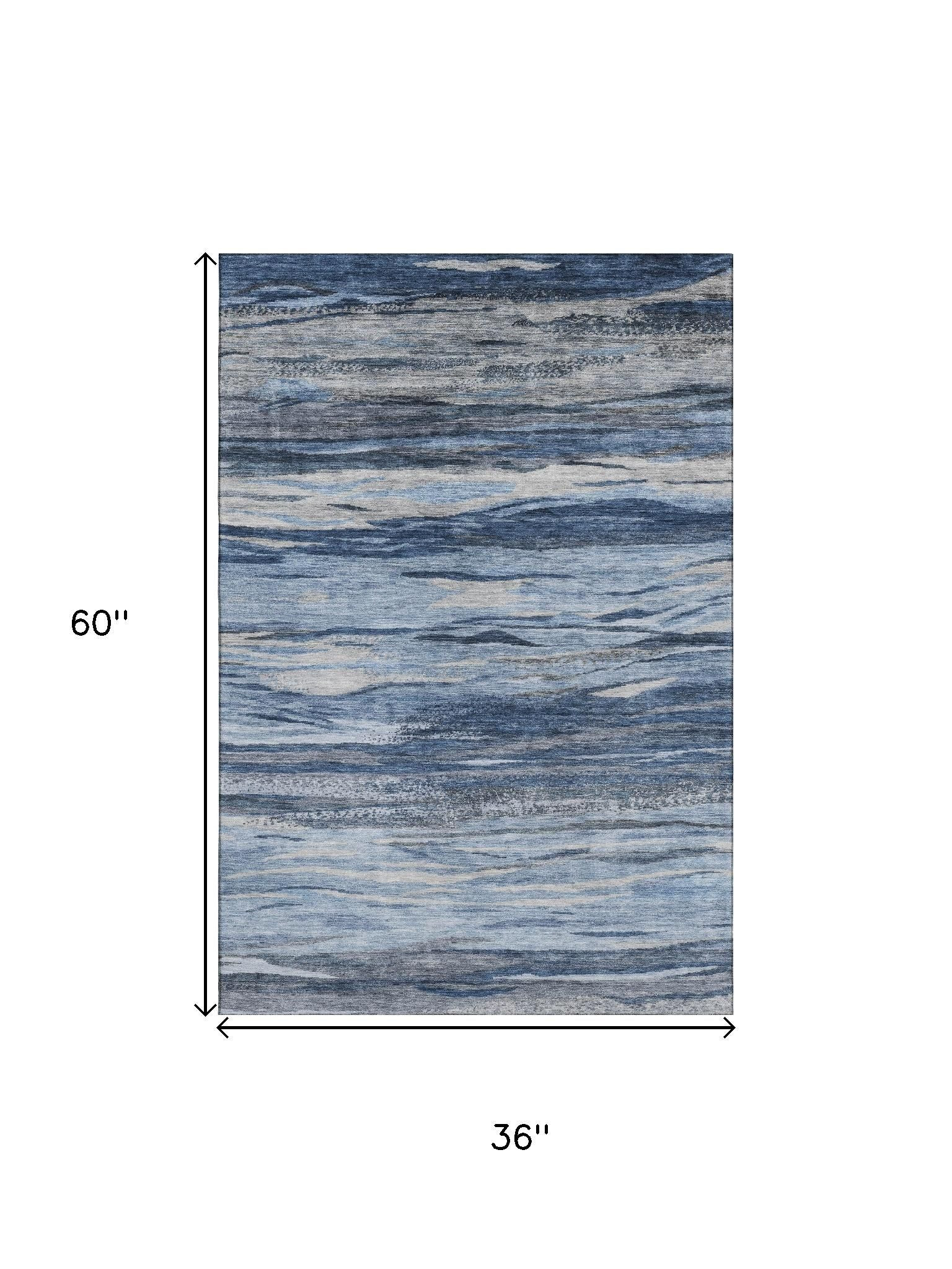 Add great coloration and comfortable texture to your space with this 3-foot x 5-foot blue gray and silver abstract washable area rug with uv protection. Ideal for spaces with kids and pets, this rug is stain resistant to help repel dirt and spilled liquids. Built to last, this rug crafted from polyester fibers is known for its durability and long lasting appeal. Rugs are a great way to showcase your style, hide imperfections, warm your home and reduce noise. This smaller sized, transitional styled rug is just what you need for your walkway, bedside, in front of door, cabinet, refrigerator, or chair. 36.00-inch h x 60.00-inch w x 0.39-inch d.