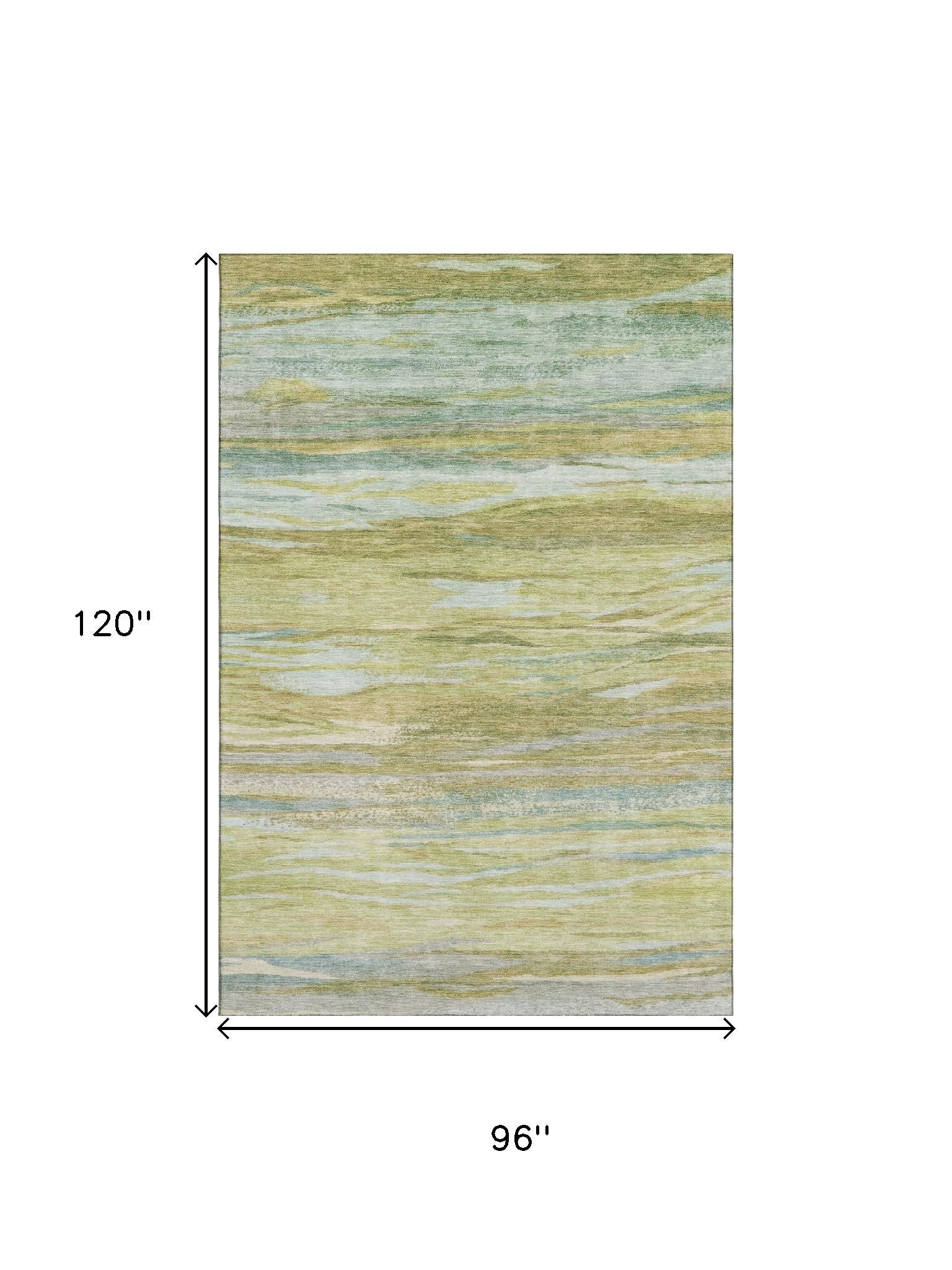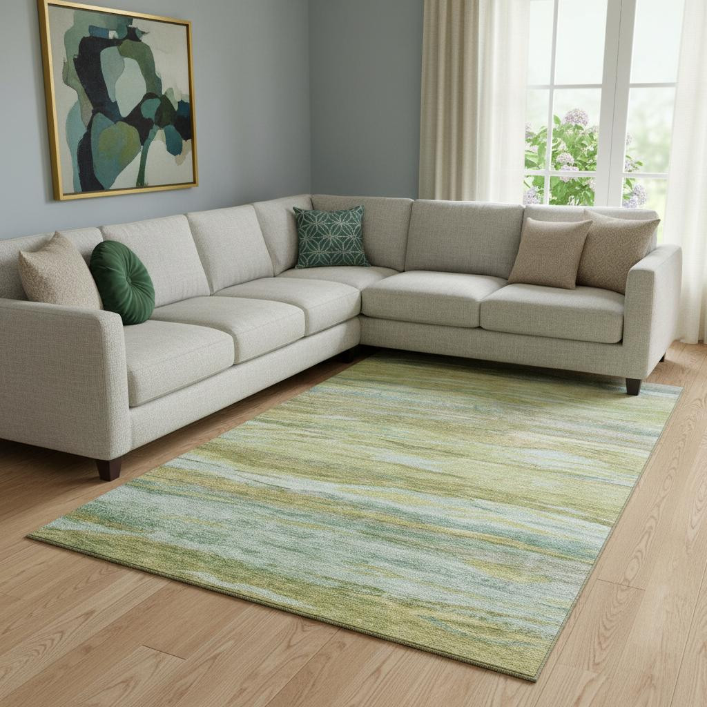 Add some artistry to your room with this 8-foot x 10-foot sage gray and aqua abstract washable area rug with uv protection. Ideal for spaces with kids and pets, this rug is stain resistant to help repel dirt and spilled liquids. Built to last, this rug crafted from polyester fibers is known for its durability and long lasting appeal. Rugs are a great way to showcase your style, hide imperfections, warm your home and reduce noise. This larger sized, transitional styled rug is ready to create a focal point or statement piece in your room. 96.00-inch h x 120.00-inch w x 0.39-inch d.
