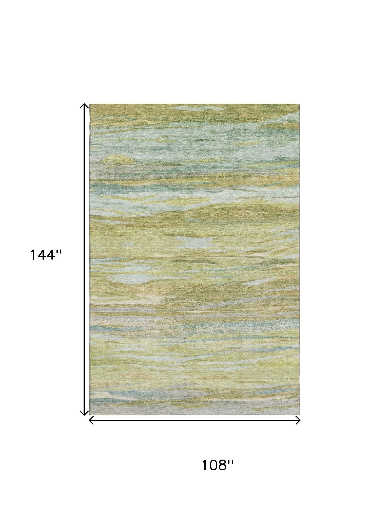 Add some artistry to your room with this 9-foot x 12-foot sage gray and aqua abstract washable area rug with uv protection. Ideal for spaces with kids and pets, this rug is stain resistant to help repel dirt and spilled liquids. Built to last, this rug crafted from polyester fibers is known for its durability and long lasting appeal. Rugs are a great way to showcase your style, hide imperfections, warm your home and reduce noise. This larger sized, transitional styled rug is ready to create a focal point or statement piece in your room. 108.00-inch h x 144.00-inch w x 0.39-inch d.