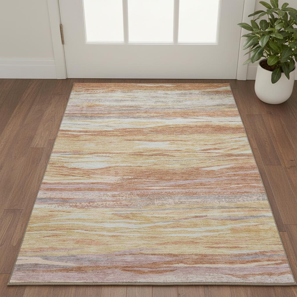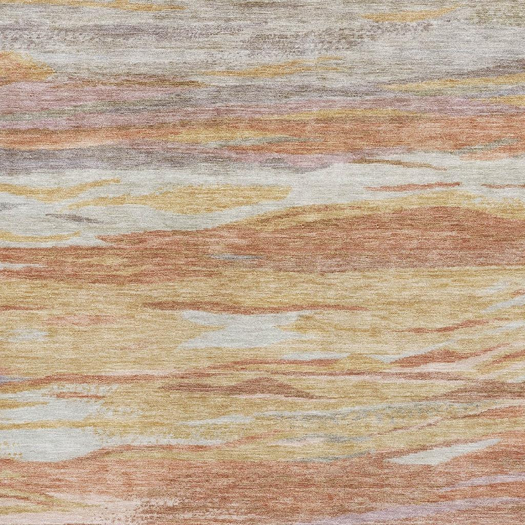Add some artistry to your room with this 3-foot x 5-foot salmon gold and gray abstract washable area rug with uv protection. Ideal for spaces with kids and pets, this rug is stain resistant to help repel dirt and spilled liquids. Built to last, this rug crafted from polyester fibers is known for its durability and long lasting appeal. Rugs are a great way to showcase your style, hide imperfections, warm your home and reduce noise. This smaller sized, transitional styled rug is just what you need for your walkway, bedside, in front of door, cabinet, refrigerator, or chair. 36.00-inch h x 60.00-inch w x 0.39-inch d.