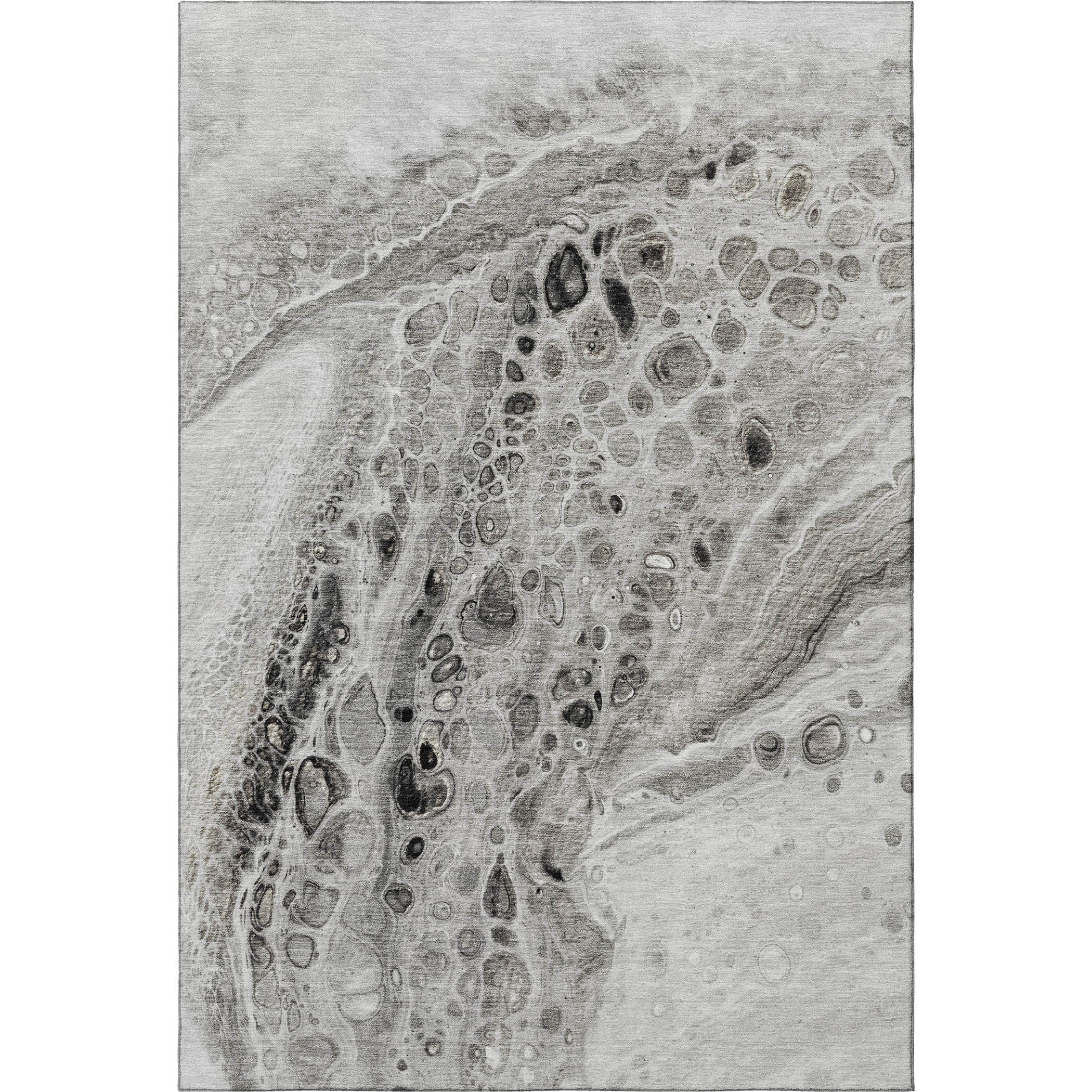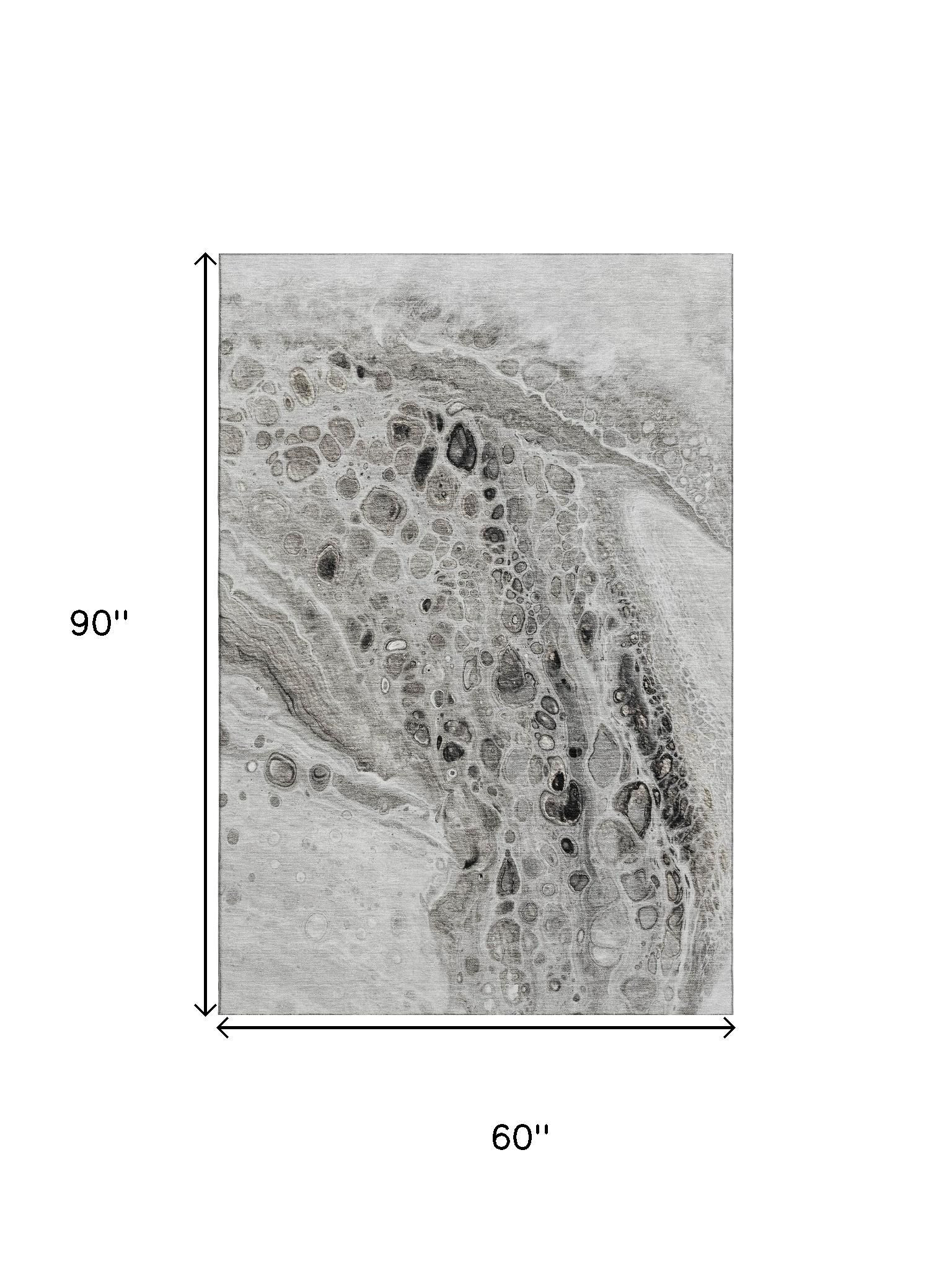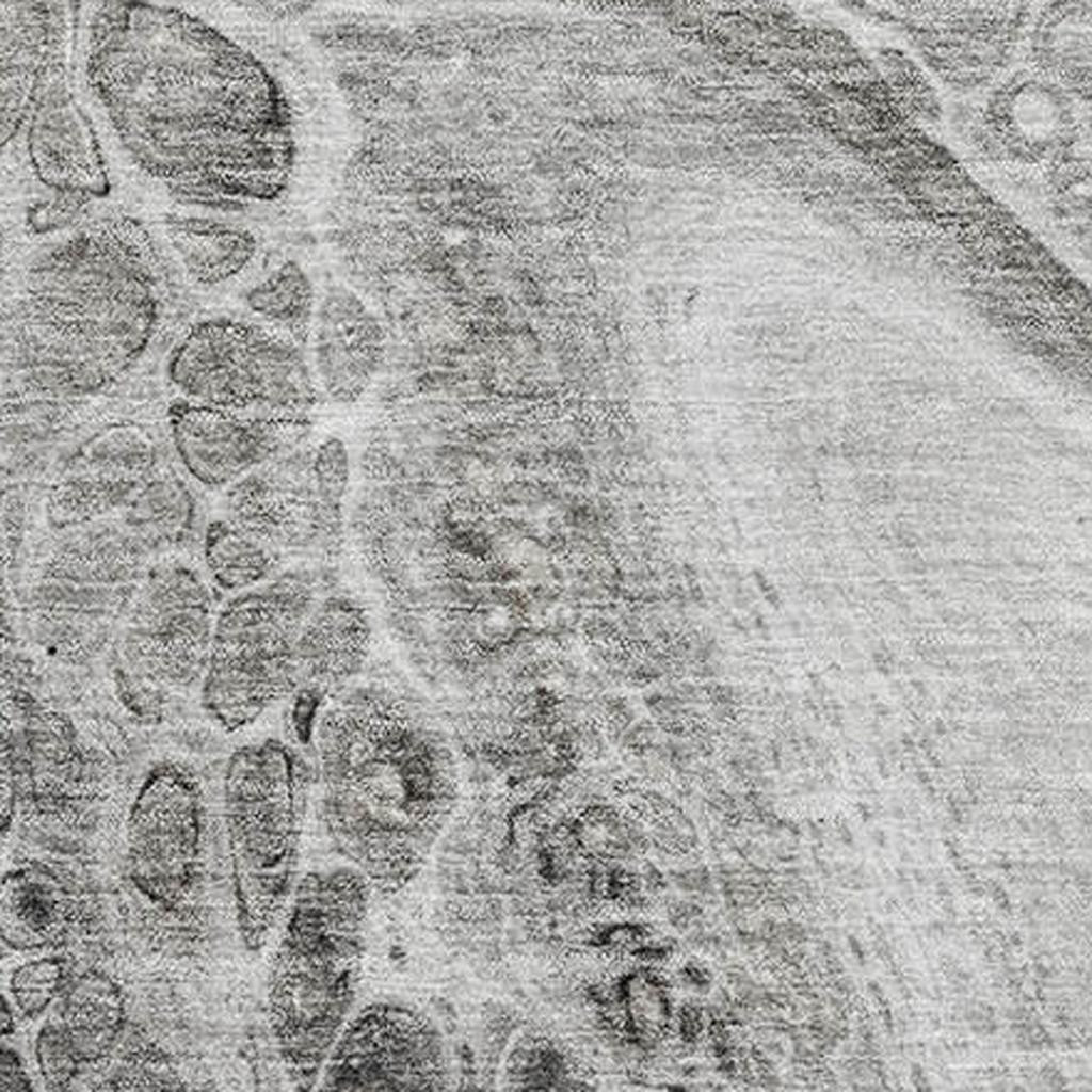 Set an inviting tone in your space with this 5-foot x 8-foot pewter gray and silver abstract washable area rug with uv protection. Ideal for spaces with kids and pets, this rug is stain resistant to help repel dirt and spilled liquids. Built to last, this rug crafted from polyester fibers is known for its durability and long lasting appeal. Rugs are a great way to showcase your style, hide imperfections, warm your home and reduce noise. This larger sized, transitional styled rug is ready to create a focal point or statement piece in your room. 60.00-inch h x 90.00-inch w x 0.39-inch d.