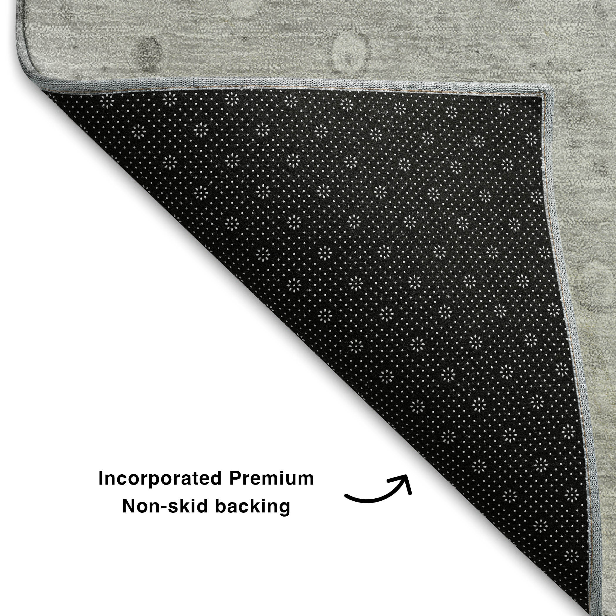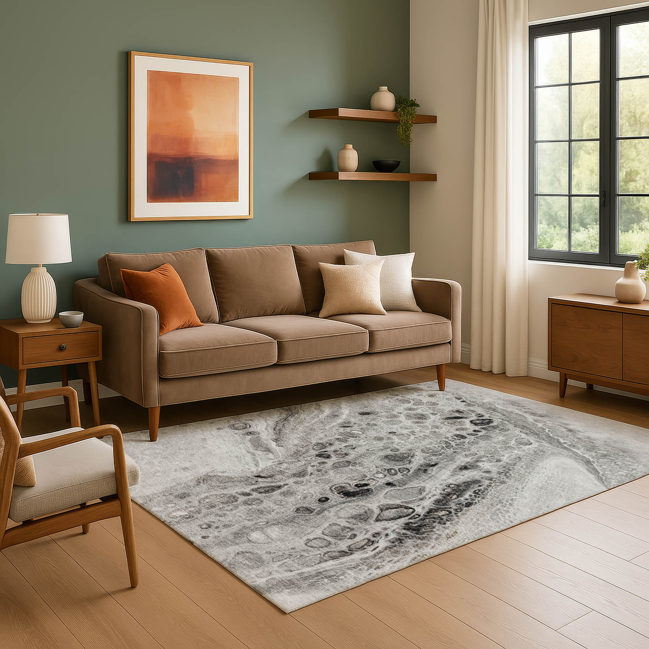 Add some artistry to your room with this 9-foot x 12-foot pewter gray and silver abstract washable area rug with uv protection. Ideal for spaces with kids and pets, this rug is stain resistant to help repel dirt and spilled liquids. Built to last, this rug crafted from polyester fibers is known for its durability and long lasting appeal. Rugs are a great way to showcase your style, hide imperfections, warm your home and reduce noise. This larger sized, transitional styled rug is ready to create a focal point or statement piece in your room. 108.00-inch h x 144.00-inch w x 0.39-inch d.
