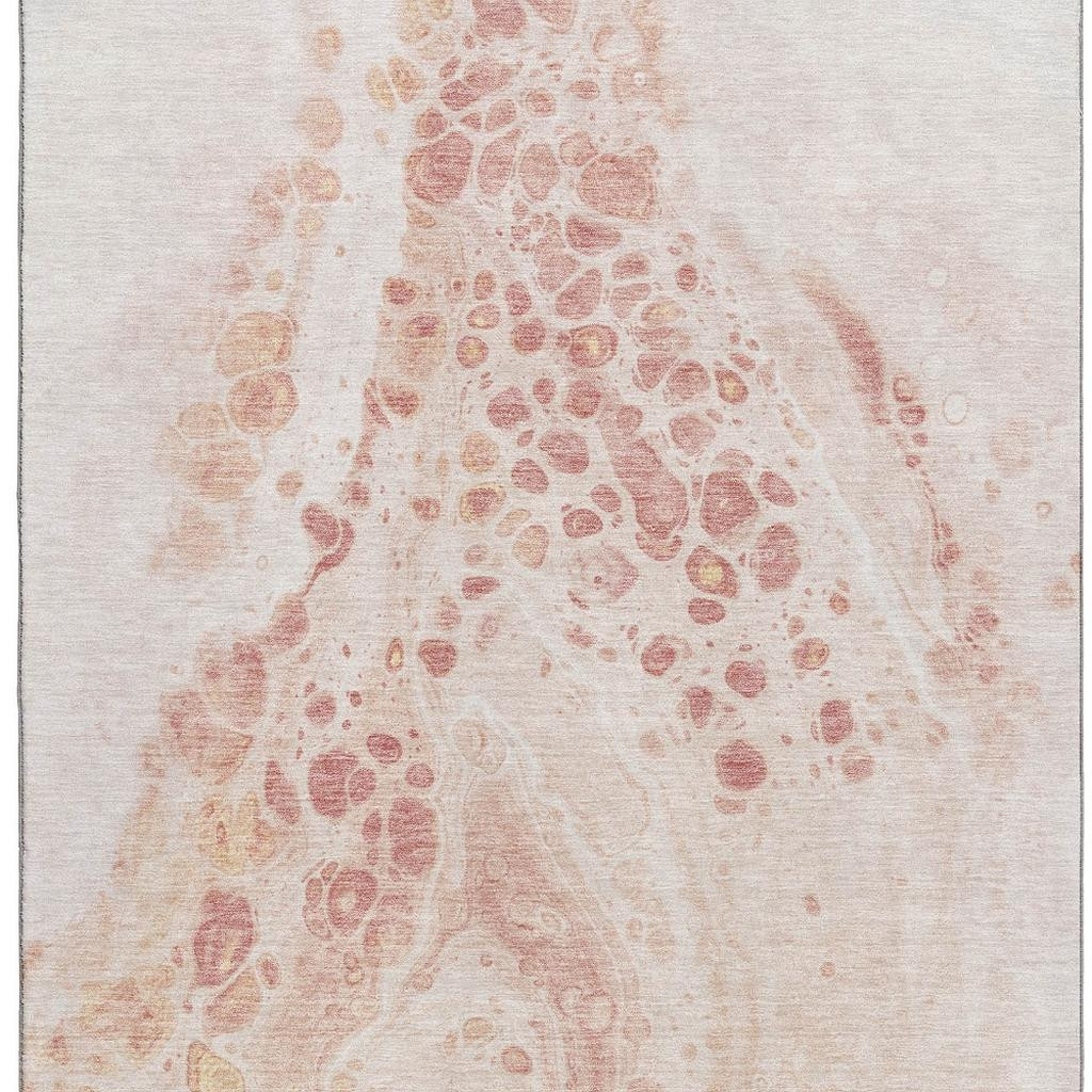 This 3-foot x 5-foot salmon and ivory abstract washable area rug with uv protection, is a great way to add warmth to a room. Ideal for spaces with kids and pets, this rug is stain resistant to help repel dirt and spilled liquids. Built to last, this rug crafted from polyester fibers is known for its durability and long lasting appeal. Rugs are a great way to showcase your style, hide imperfections, warm your home and reduce noise. This smaller sized, transitional styled rug is just what you need for your walkway, bedside, in front of door, cabinet, refrigerator, or chair. 36.00-inch h x 60.00-inch w x 0.39-inch d.