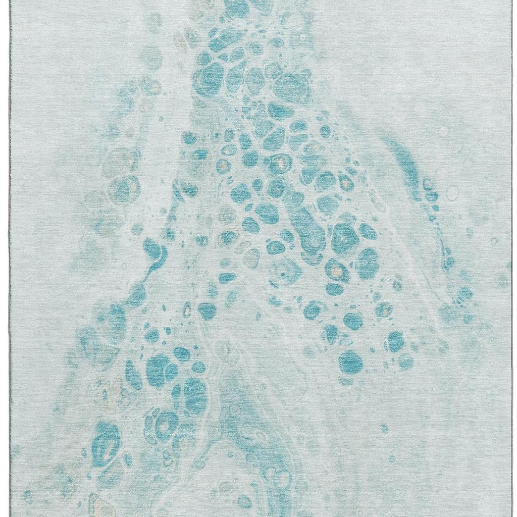 Set an inviting tone in your space with this 5-foot x 8-foot teal and ivory abstract washable area rug with uv protection. Ideal for spaces with kids and pets, this rug is stain resistant to help repel dirt and spilled liquids. Built to last, this rug crafted from polyester fibers is known for its durability and long lasting appeal. Rugs are a great way to showcase your style, hide imperfections, warm your home and reduce noise. This larger sized, transitional styled rug is ready to create a focal point or statement piece in your room. 60.00-inch h x 90.00-inch w x 0.39-inch d.