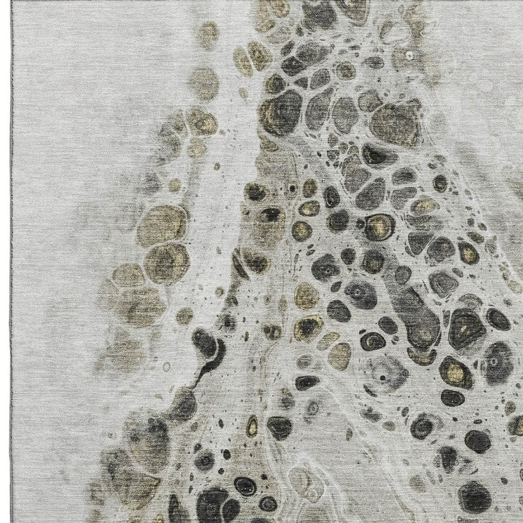 Set an inviting tone in your space with this 5-foot x 8-foot taupe gray and silver abstract washable area rug with uv protection. Ideal for spaces with kids and pets, this rug is stain resistant to help repel dirt and spilled liquids. Built to last, this rug crafted from polyester fibers is known for its durability and long lasting appeal. Rugs are a great way to showcase your style, hide imperfections, warm your home and reduce noise. This larger sized, transitional styled rug is ready to create a focal point or statement piece in your room. 60.00-inch h x 90.00-inch w x 0.39-inch d.