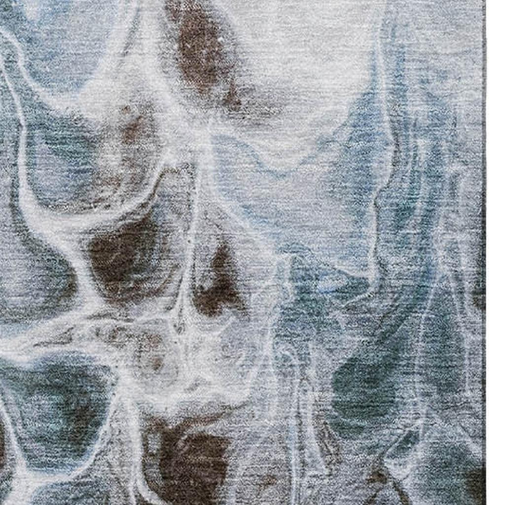Add some artistry to your room with this 3-foot x 5-foot chocolate blue and gray abstract washable area rug with uv protection. Ideal for spaces with kids and pets, this rug is stain resistant to help repel dirt and spilled liquids. Built to last, this rug crafted from polyester fibers is known for its durability and long lasting appeal. Rugs are a great way to showcase your style, hide imperfections, warm your home and reduce noise. This smaller sized, transitional styled rug is just what you need for your walkway, bedside, in front of door, cabinet, refrigerator, or chair. 36.00-inch h x 60.00-inch w x 0.39-inch d.