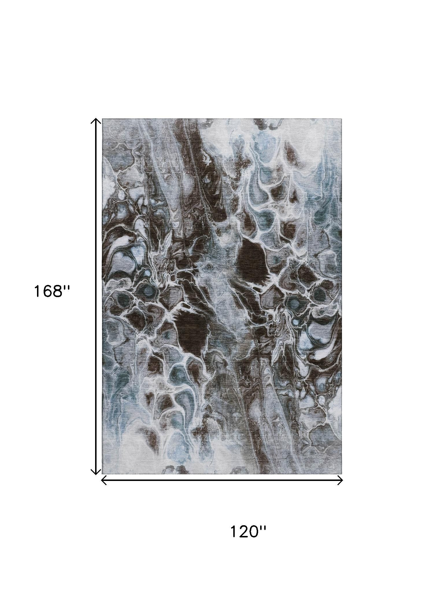 This 10-foot x 14-foot chocolate blue and gray abstract washable area rug with uv protection, is a great way to add warmth to a room. Ideal for spaces with kids and pets, this rug is stain resistant to help repel dirt and spilled liquids. Built to last, this rug crafted from polyester fibers is known for its durability and long lasting appeal. Rugs are a great way to showcase your style, hide imperfections, warm your home and reduce noise. This larger sized, transitional styled rug is ready to create a focal point or statement piece in your room. 120.00-inch h x 168.00-inch w x 0.39-inch d.