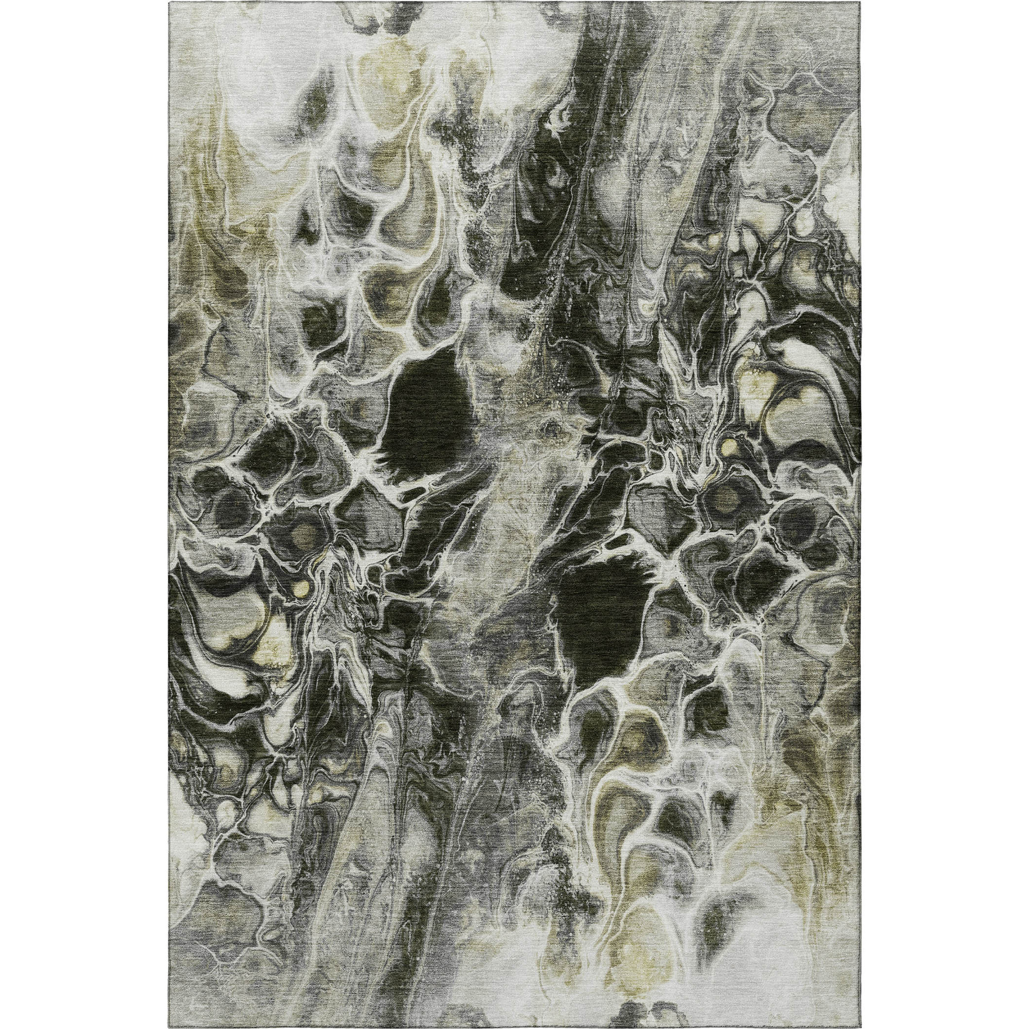 Add some artistry to your room with this 8-foot x 10-foot pewter black and silver abstract washable area rug with uv protection. Ideal for spaces with kids and pets, this rug is stain resistant to help repel dirt and spilled liquids. Built to last, this rug crafted from polyester fibers is known for its durability and long lasting appeal. Rugs are a great way to showcase your style, hide imperfections, warm your home and reduce noise. This larger sized, transitional styled rug is ready to create a focal point or statement piece in your room. 96.00-inch h x 120.00-inch w x 0.39-inch d.