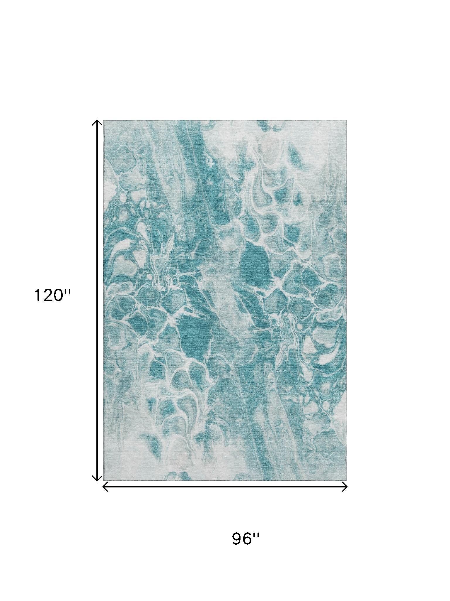 Add great coloration and comfortable texture to your space with this 8-foot x 10-foot teal and ivory abstract washable area rug with uv protection. Ideal for spaces with kids and pets, this rug is stain resistant to help repel dirt and spilled liquids. Built to last, this rug crafted from polyester fibers is known for its durability and long lasting appeal. Rugs are a great way to showcase your style, hide imperfections, warm your home and reduce noise. This larger sized, transitional styled rug is ready to create a focal point or statement piece in your room. 96.00-inch h x 120.00-inch w x 0.39-inch d.