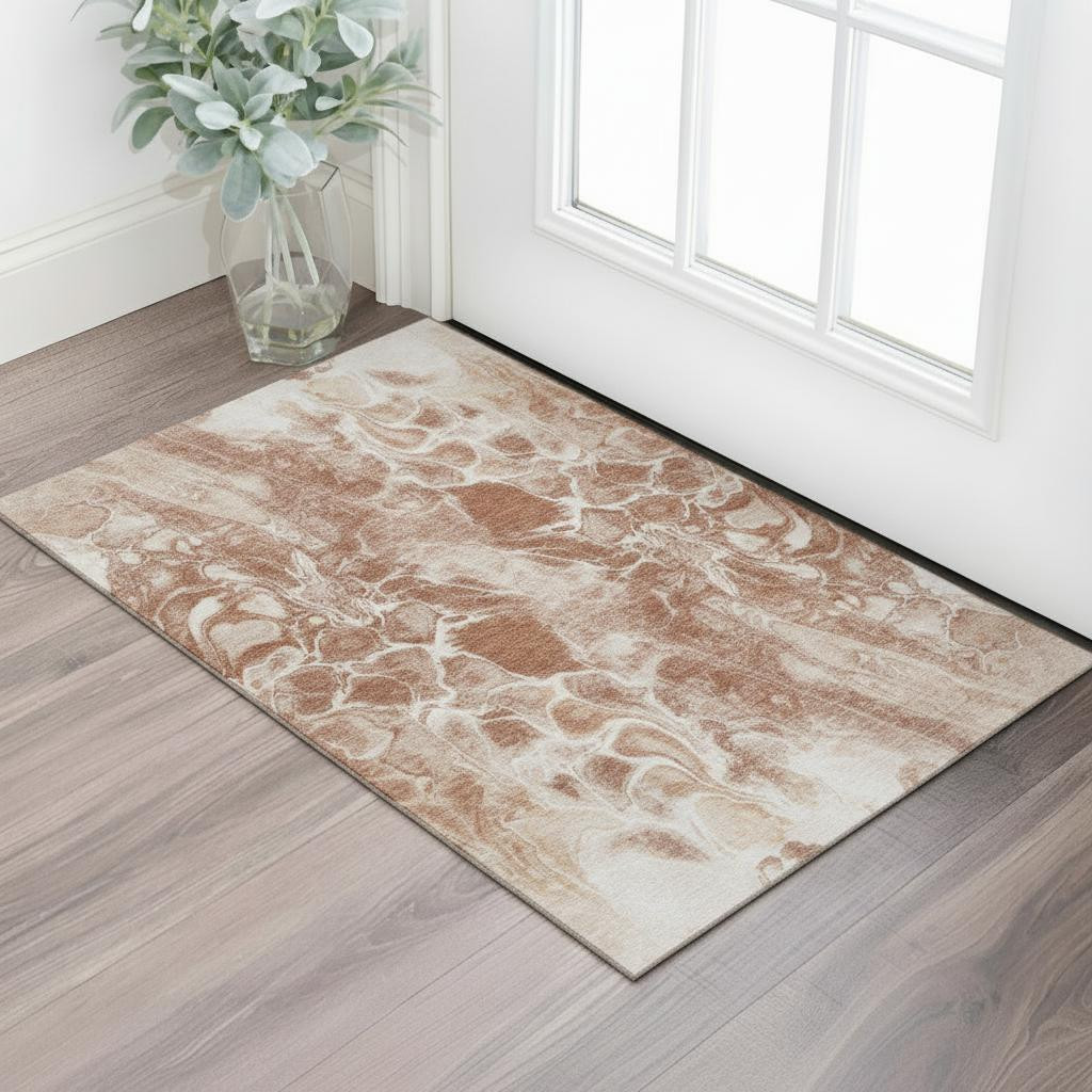 Add great coloration and comfortable texture to your space with this 3-foot x 5-foot terra cotta and ivory abstract washable area rug with uv protection. Ideal for spaces with kids and pets, this rug is stain resistant to help repel dirt and spilled liquids. Built to last, this rug crafted from polyester fibers is known for its durability and long lasting appeal. Rugs are a great way to showcase your style, hide imperfections, warm your home and reduce noise. This smaller sized, transitional styled rug is just what you need for your walkway, bedside, in front of door, cabinet, refrigerator, or chair. 36.00-inch h x 60.00-inch w x 0.39-inch d.