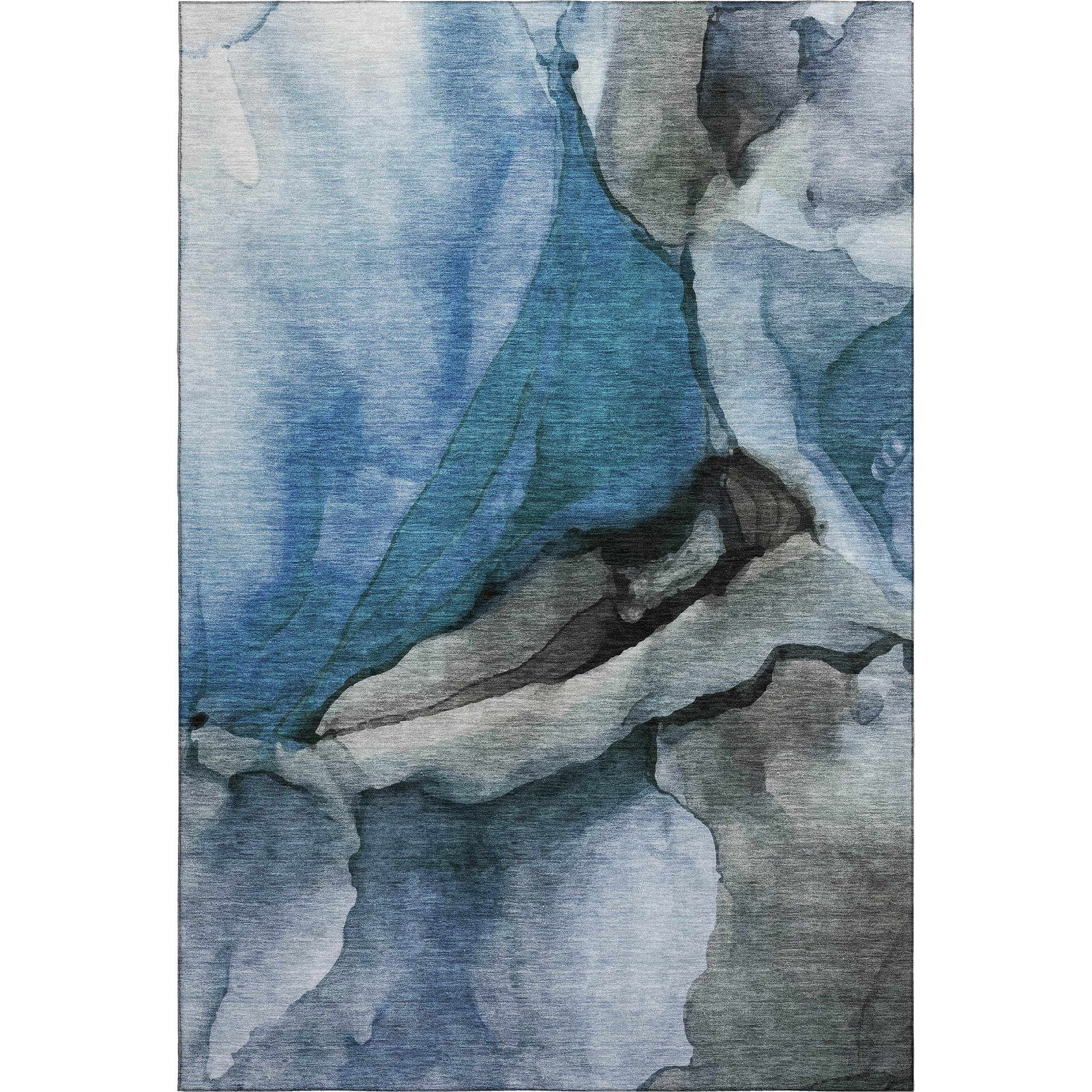 Add great coloration and comfortable texture to your space with this 5-foot x 8-foot blue gray and silver abstract washable area rug with uv protection. Ideal for spaces with kids and pets, this rug is stain resistant to help repel dirt and spilled liquids. Built to last, this rug crafted from polyester fibers is known for its durability and long lasting appeal. Rugs are a great way to showcase your style, hide imperfections, warm your home and reduce noise. This larger sized, transitional styled rug is ready to create a focal point or statement piece in your room. 60.00-inch h x 90.00-inch w x 0.39-inch d.