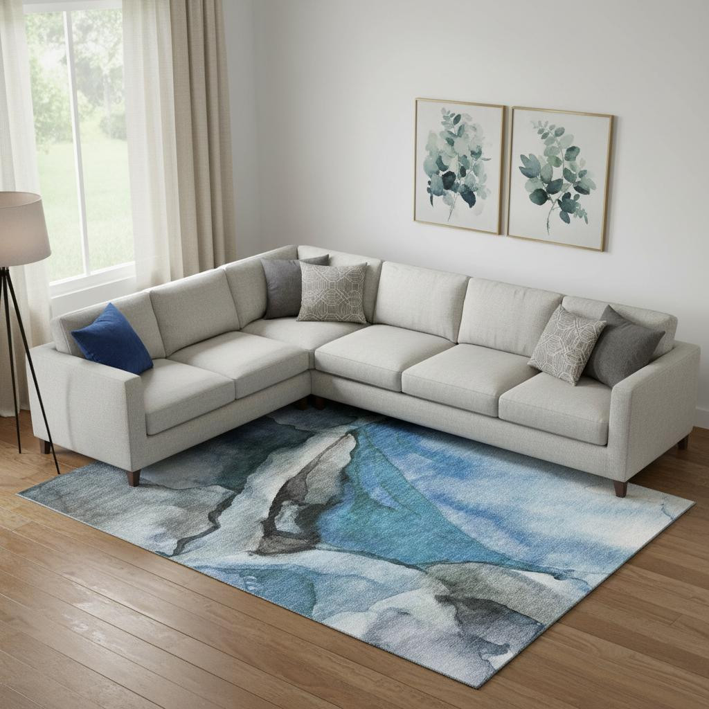 Add great coloration and comfortable texture to your space with this 10-foot x 14-foot blue gray and silver abstract washable area rug with uv protection. Ideal for spaces with kids and pets, this rug is stain resistant to help repel dirt and spilled liquids. Built to last, this rug crafted from polyester fibers is known for its durability and long lasting appeal. Rugs are a great way to showcase your style, hide imperfections, warm your home and reduce noise. This larger sized, transitional styled rug is ready to create a focal point or statement piece in your room. 120.00-inch h x 168.00-inch w x 0.39-inch d.
