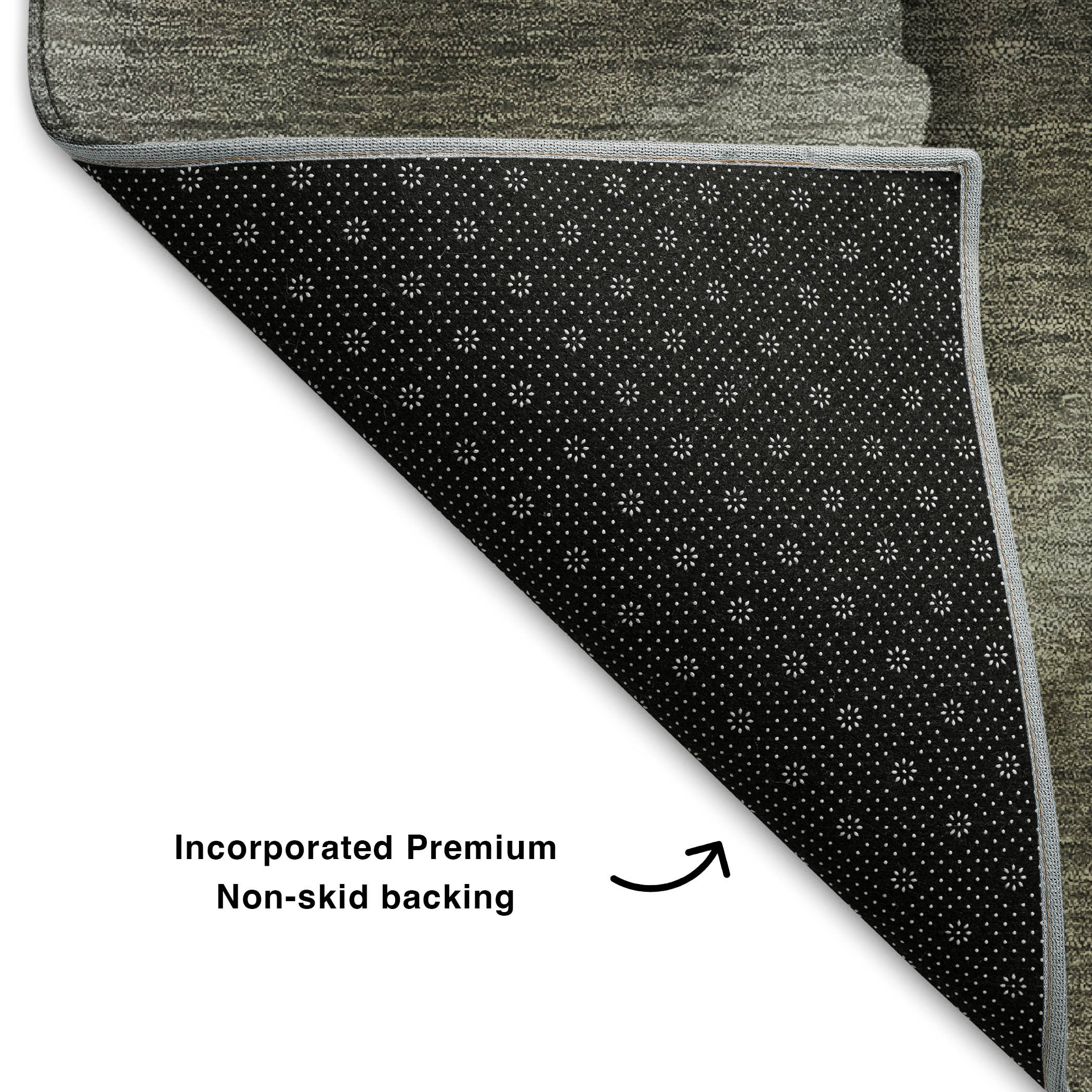 This 3-foot x 5-foot gray silver and taupe abstract washable area rug with uv protection, is a great way to add warmth to a room. Ideal for spaces with kids and pets, this rug is stain resistant to help repel dirt and spilled liquids. Built to last, this rug crafted from polyester fibers is known for its durability and long lasting appeal. Rugs are a great way to showcase your style, hide imperfections, warm your home and reduce noise. This smaller sized, transitional styled rug is just what you need for your walkway, bedside, in front of door, cabinet, refrigerator, or chair. 36.00-inch h x 60.00-inch w x 0.39-inch d.
