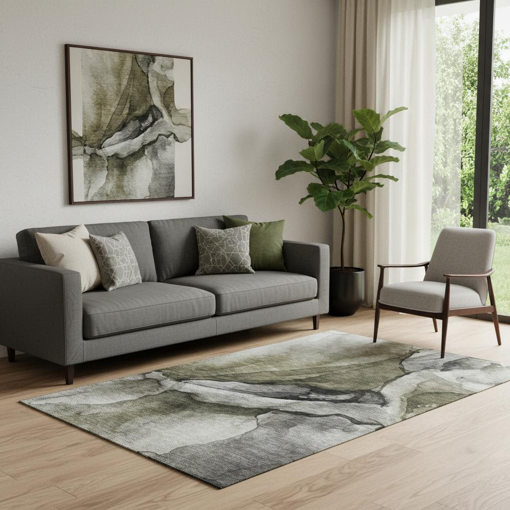 Set an inviting tone in your space with this 5-foot x 8-foot gray silver and taupe abstract washable area rug with uv protection. Ideal for spaces with kids and pets, this rug is stain resistant to help repel dirt and spilled liquids. Built to last, this rug crafted from polyester fibers is known for its durability and long lasting appeal. Rugs are a great way to showcase your style, hide imperfections, warm your home and reduce noise. This larger sized, transitional styled rug is ready to create a focal point or statement piece in your room. 60.00-inch h x 90.00-inch w x 0.39-inch d.
