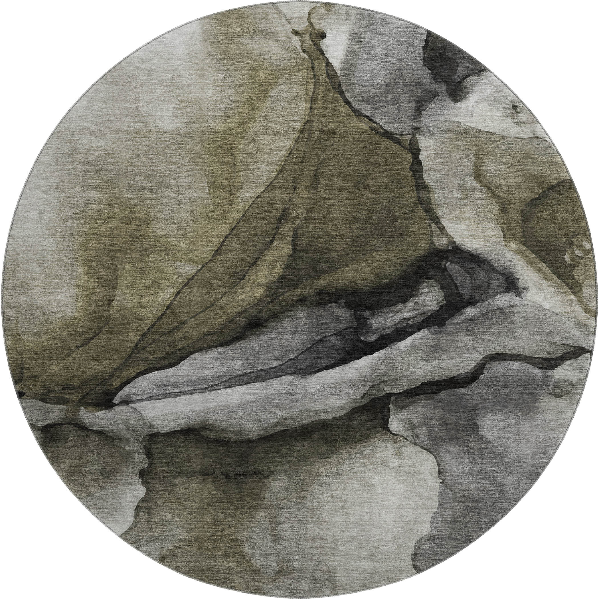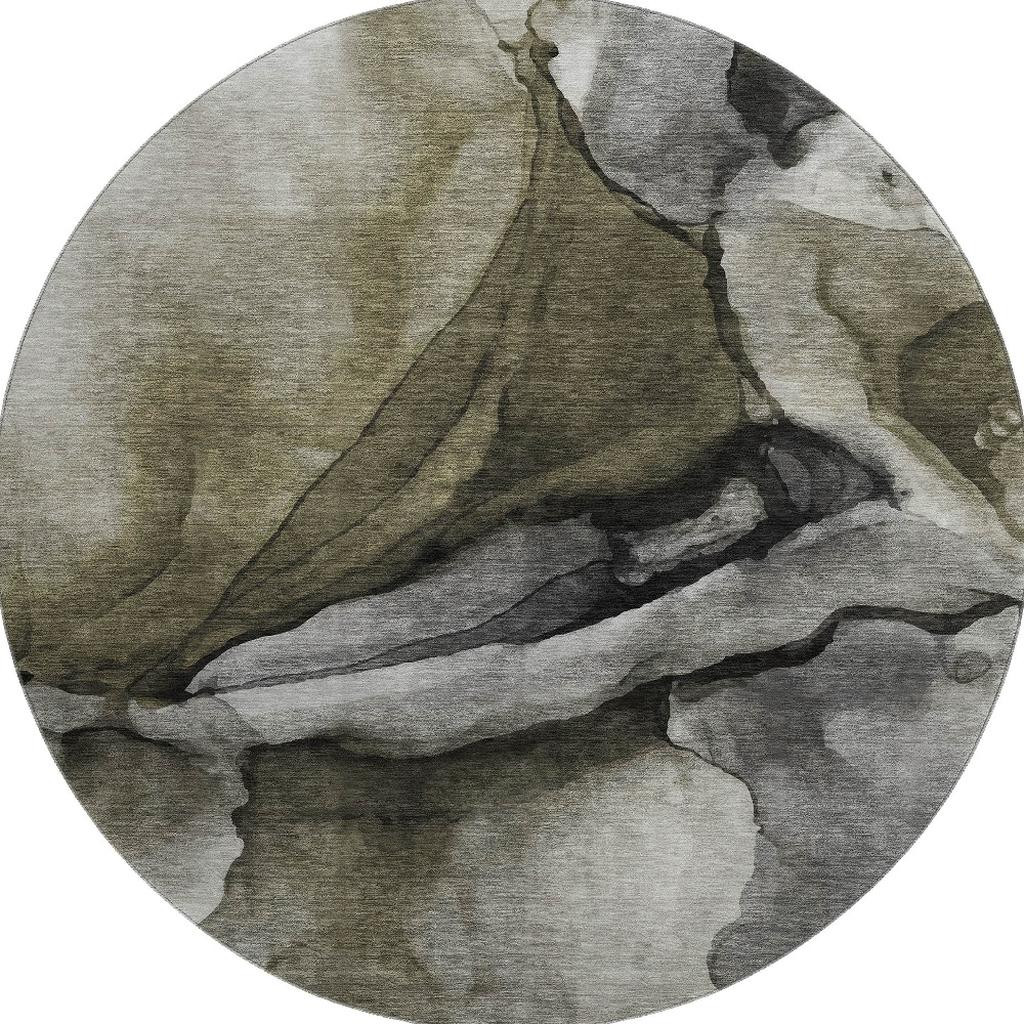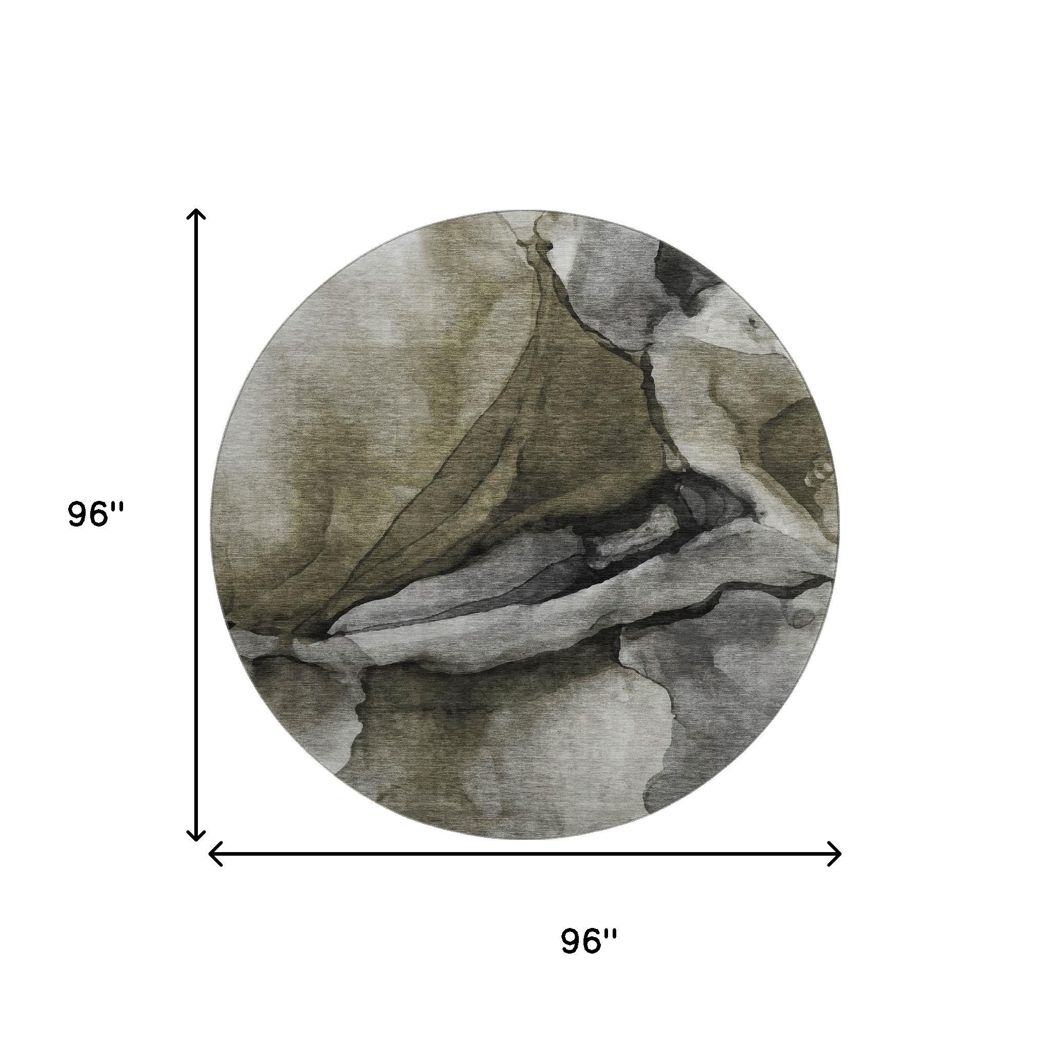 Set an inviting tone in your space with this 8-foot gray silver and taupe abstract washable round rug with uv protection. Ideal for spaces with kids and pets, this rug is stain resistant to help repel dirt and spilled liquids. Built to last, this rug crafted from polyester fibers is known for its durability and long lasting appeal. Rugs are a great way to showcase your style, hide imperfections, warm your home and reduce noise. This larger sized, transitional styled rug is ready to create a focal point or statement piece in your room. 96.00-inch h x 96.00-inch w x 0.39-inch d.