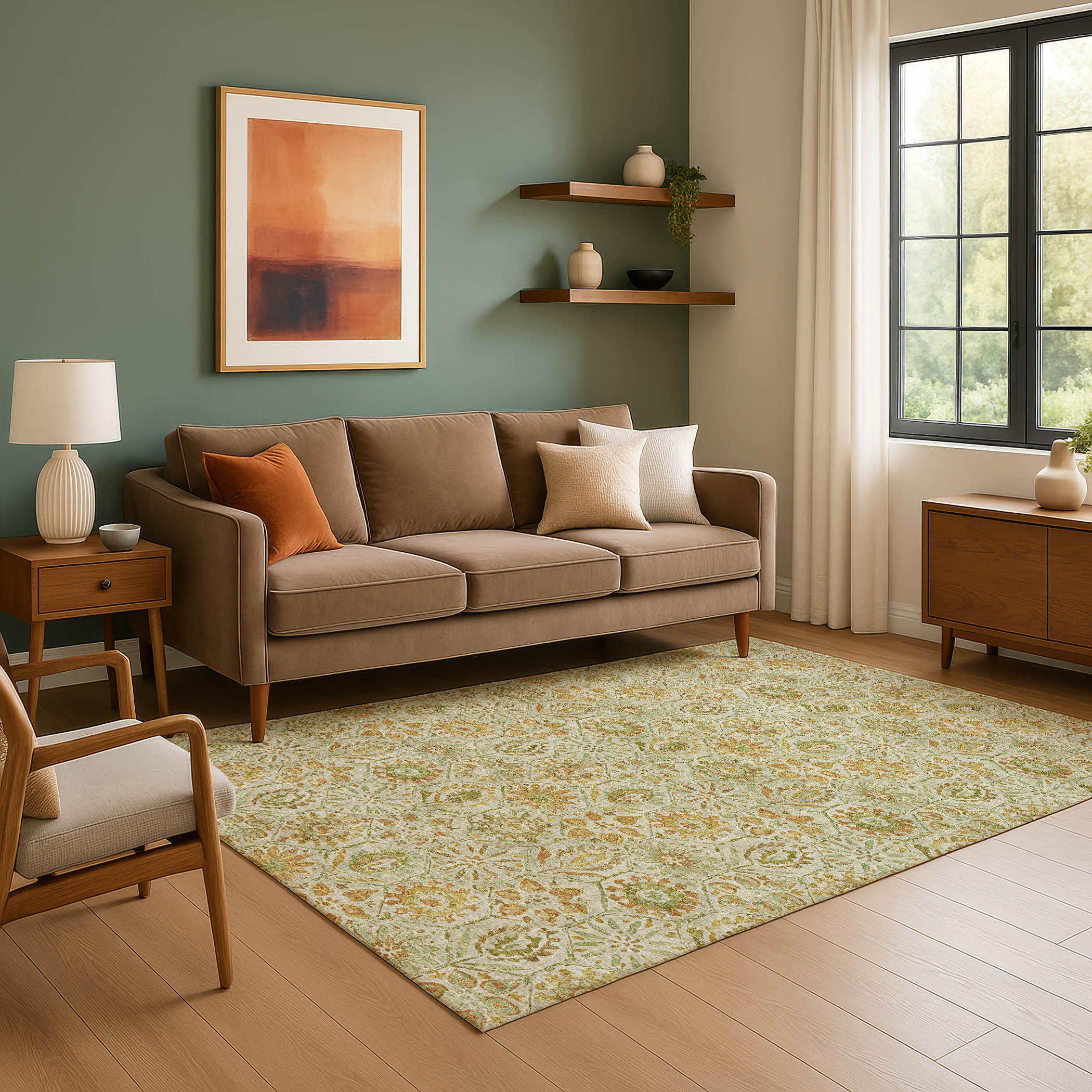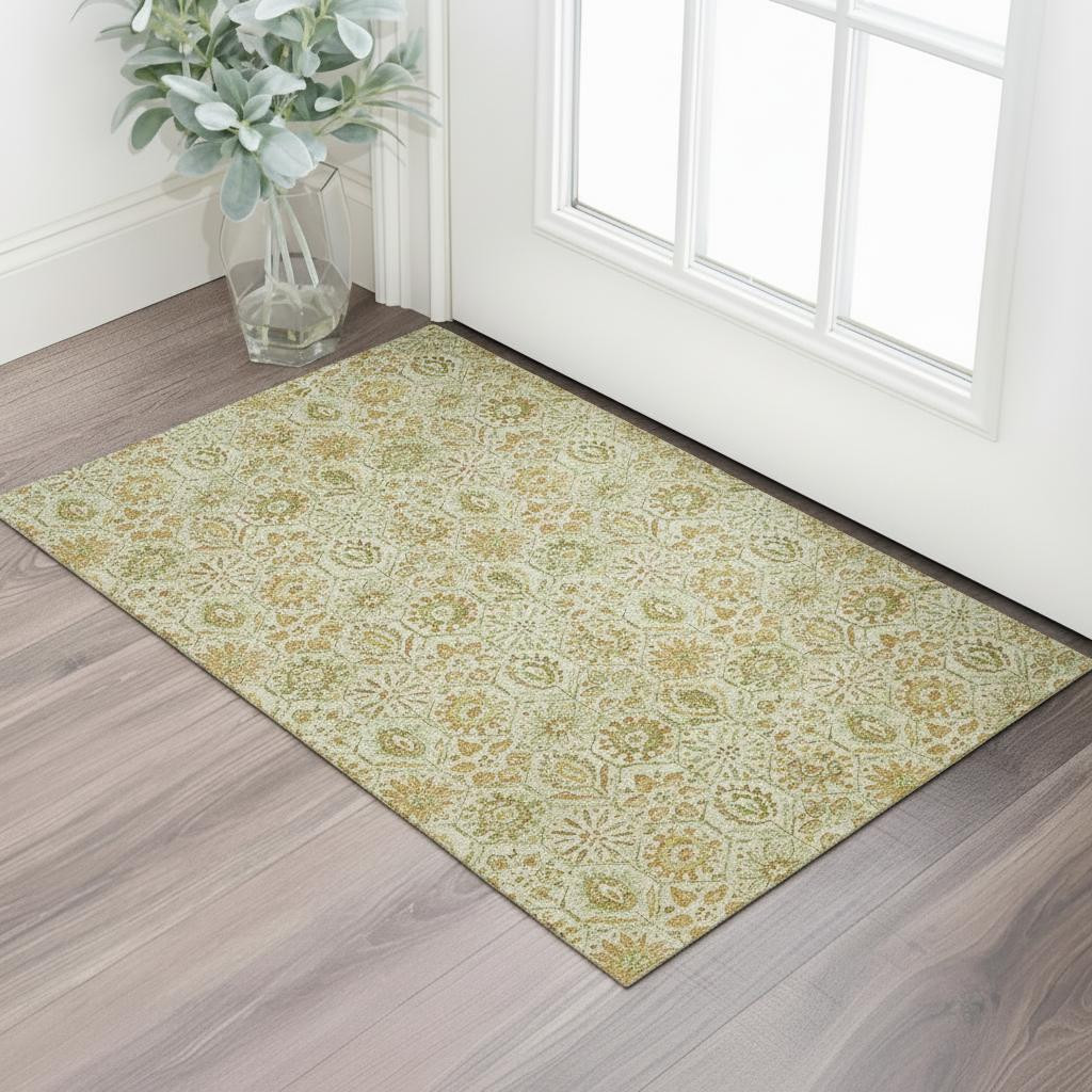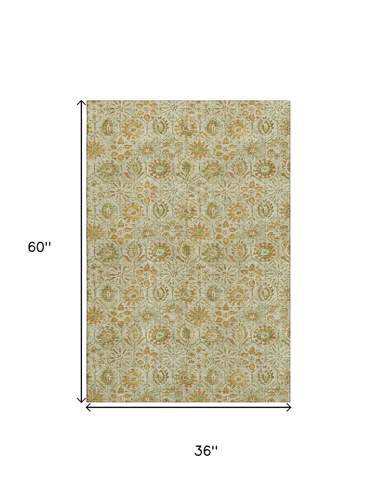 Add great coloration and comfortable texture to your space with this 3-foot x 5-foot beige and gold floral washable area rug with uv protection. Ideal for spaces with kids and pets, this rug is stain resistant to help repel dirt and spilled liquids. Built to last, this rug crafted from polyester fibers is known for its durability and long lasting appeal. Rugs are a great way to showcase your style, hide imperfections, warm your home and reduce noise. This smaller sized, transitional styled rug is just what you need for your walkway, bedside, in front of door, cabinet, refrigerator, or chair. 36.00-inch h x 60.00-inch w x 0.39-inch d.