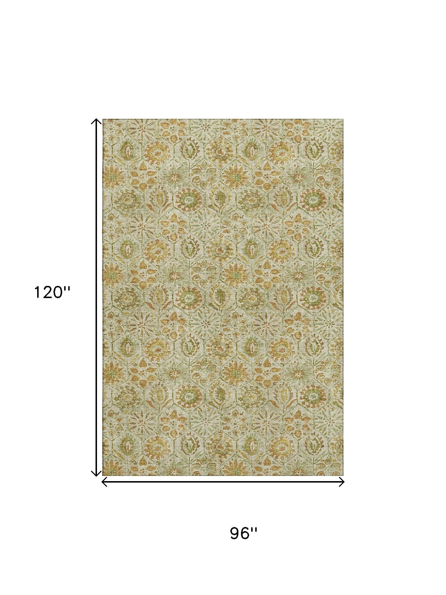 This 8-foot x 10-foot beige and gold floral washable area rug with uv protection, is a great way to add warmth to a room. Ideal for spaces with kids and pets, this rug is stain resistant to help repel dirt and spilled liquids. Built to last, this rug crafted from polyester fibers is known for its durability and long lasting appeal. Rugs are a great way to showcase your style, hide imperfections, warm your home and reduce noise. This larger sized, transitional styled rug is ready to create a focal point or statement piece in your room. 96.00-inch h x 120.00-inch w x 0.39-inch d.
