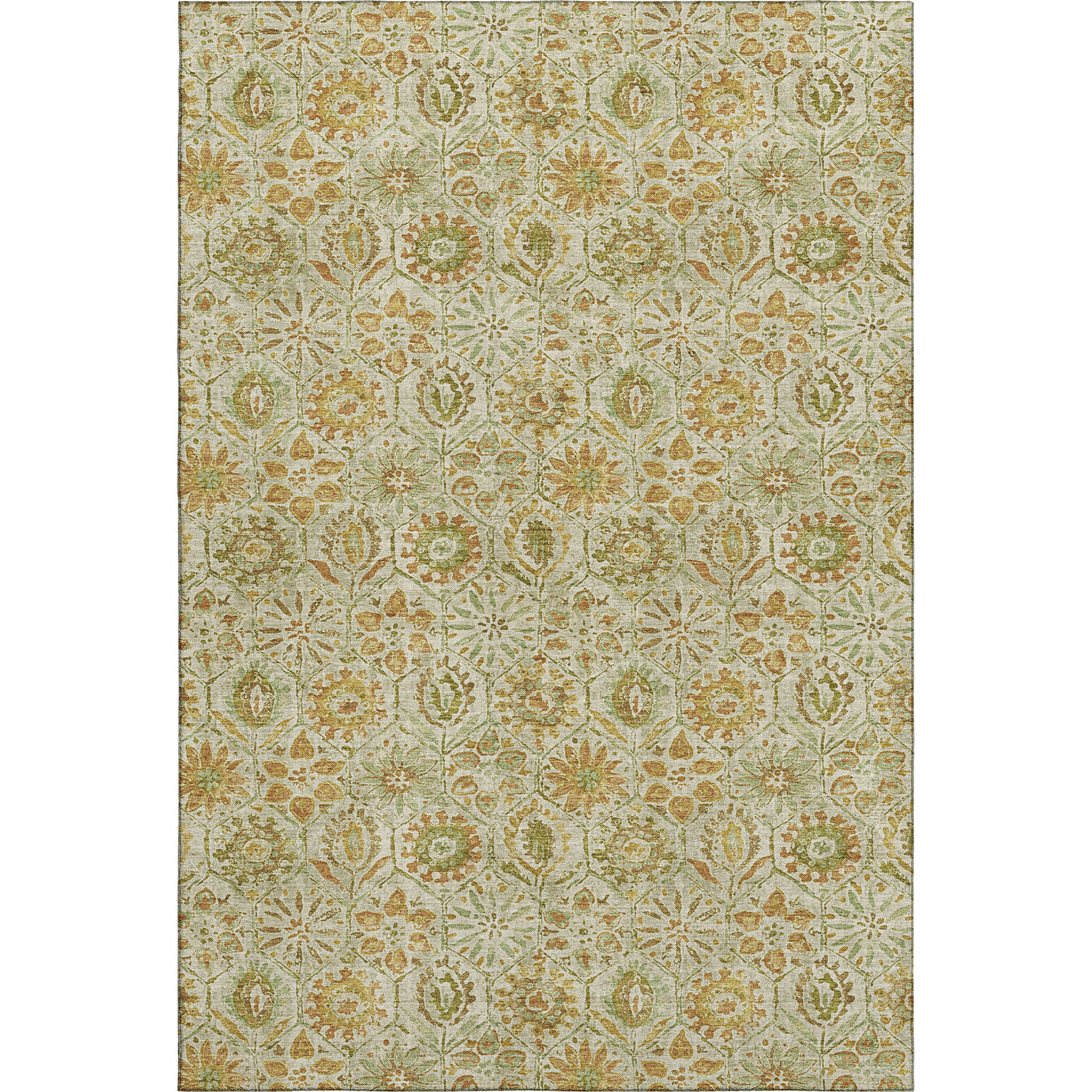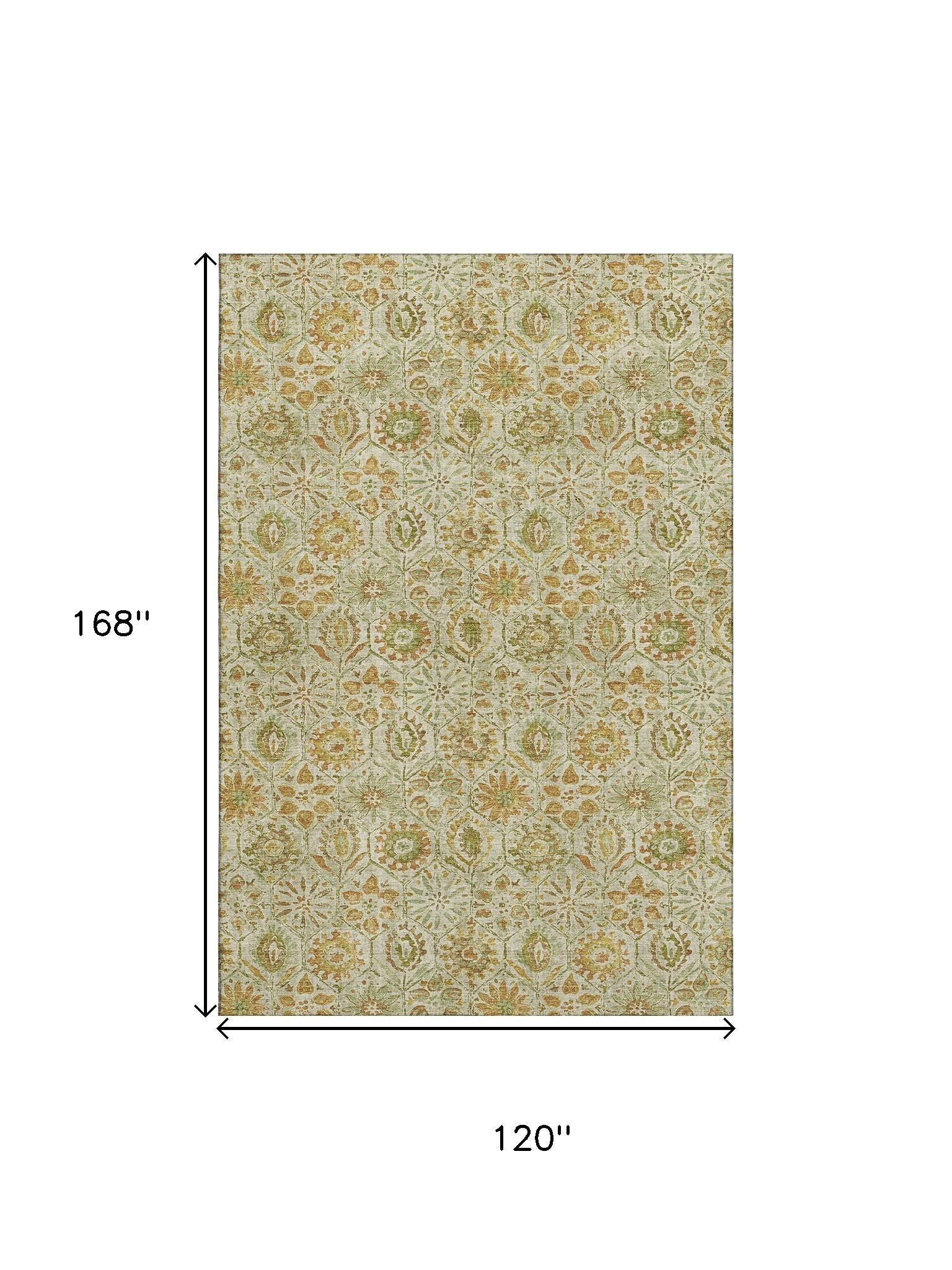 Add great coloration and comfortable texture to your space with this 10-foot x 14-foot beige and gold floral washable area rug with uv protection. Ideal for spaces with kids and pets, this rug is stain resistant to help repel dirt and spilled liquids. Built to last, this rug crafted from polyester fibers is known for its durability and long lasting appeal. Rugs are a great way to showcase your style, hide imperfections, warm your home and reduce noise. This larger sized, transitional styled rug is ready to create a focal point or statement piece in your room. 120.00-inch h x 168.00-inch w x 0.39-inch d.